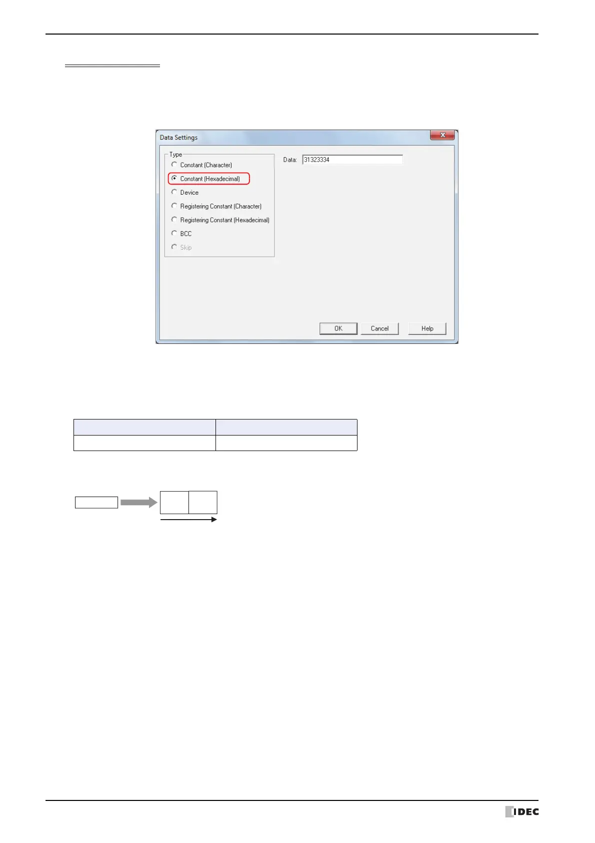 Example: Constant (Hexadecimal) for transmission command data