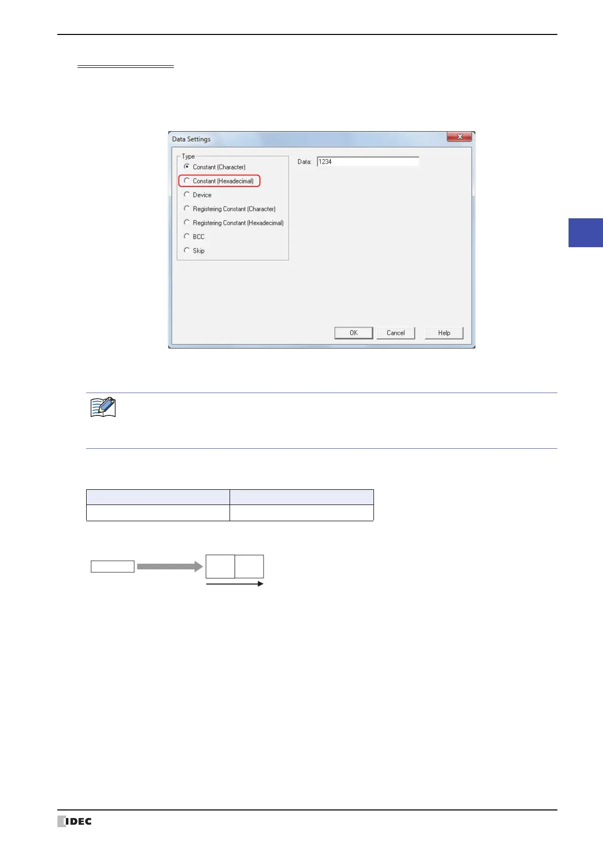 Constant (Hexadecimal) is selected under Type on the Data Settings dialog box.