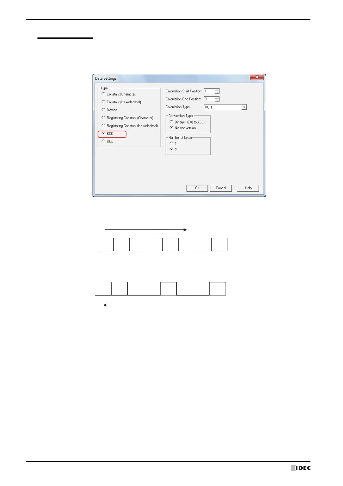 Specify the position (1 to 15) in the receive data where BCC calculation starts. The position is counted backwards,