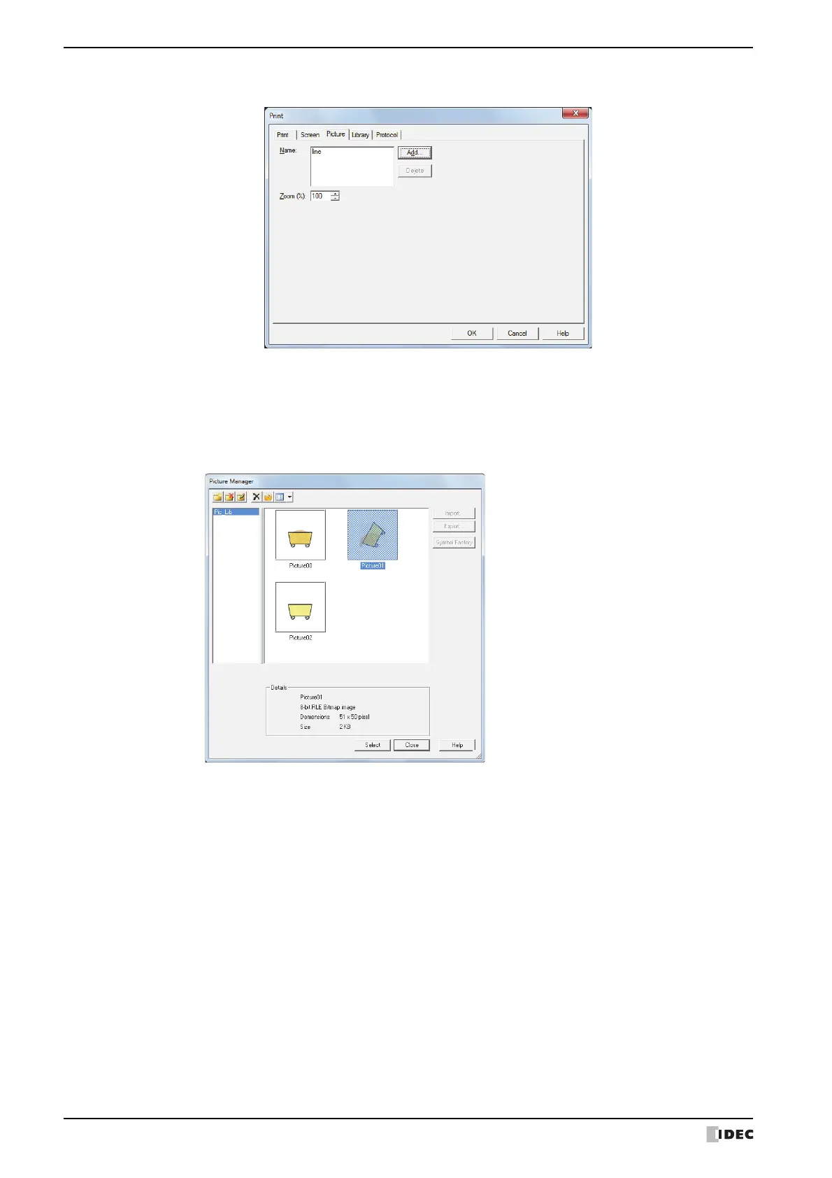 Click this button to display Picture Manager. Select a picture, and then click Select to add it to the