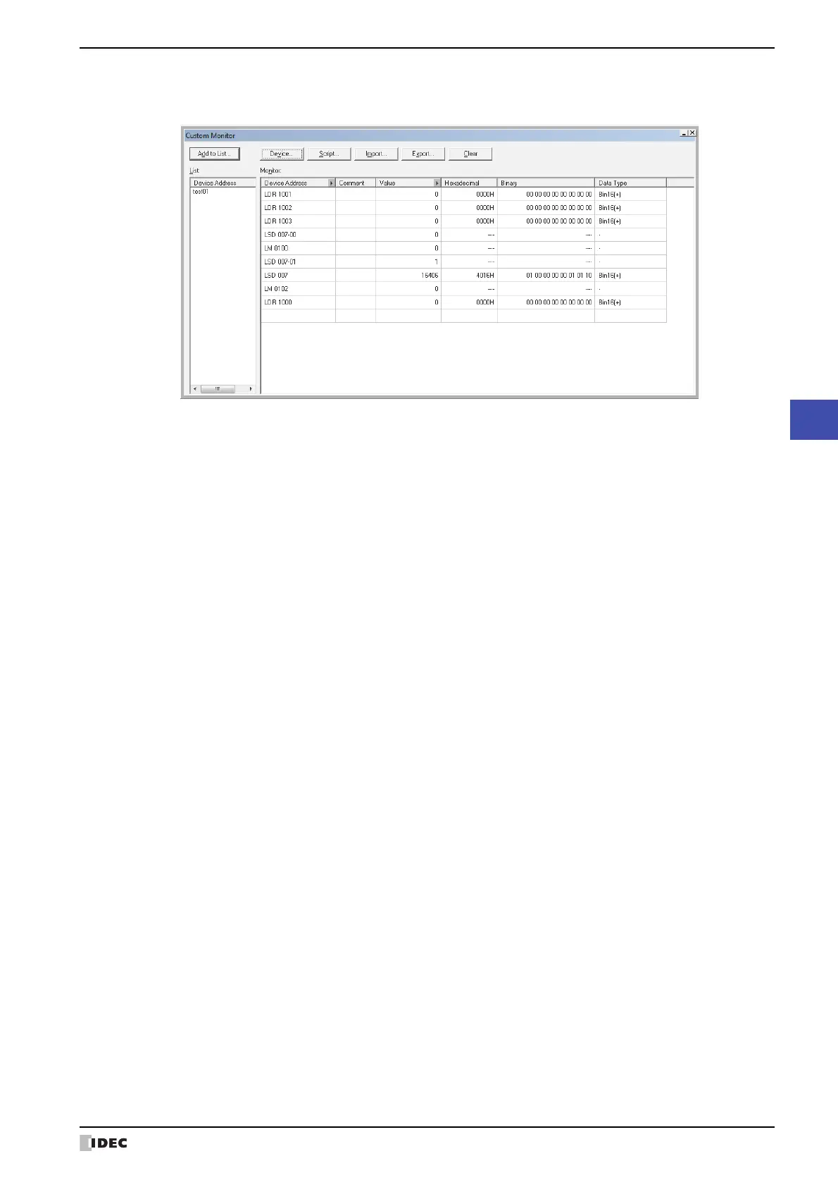 Saves device addresses registered in Monitor to project data as a custom monitor list. A saved lists can be monitored