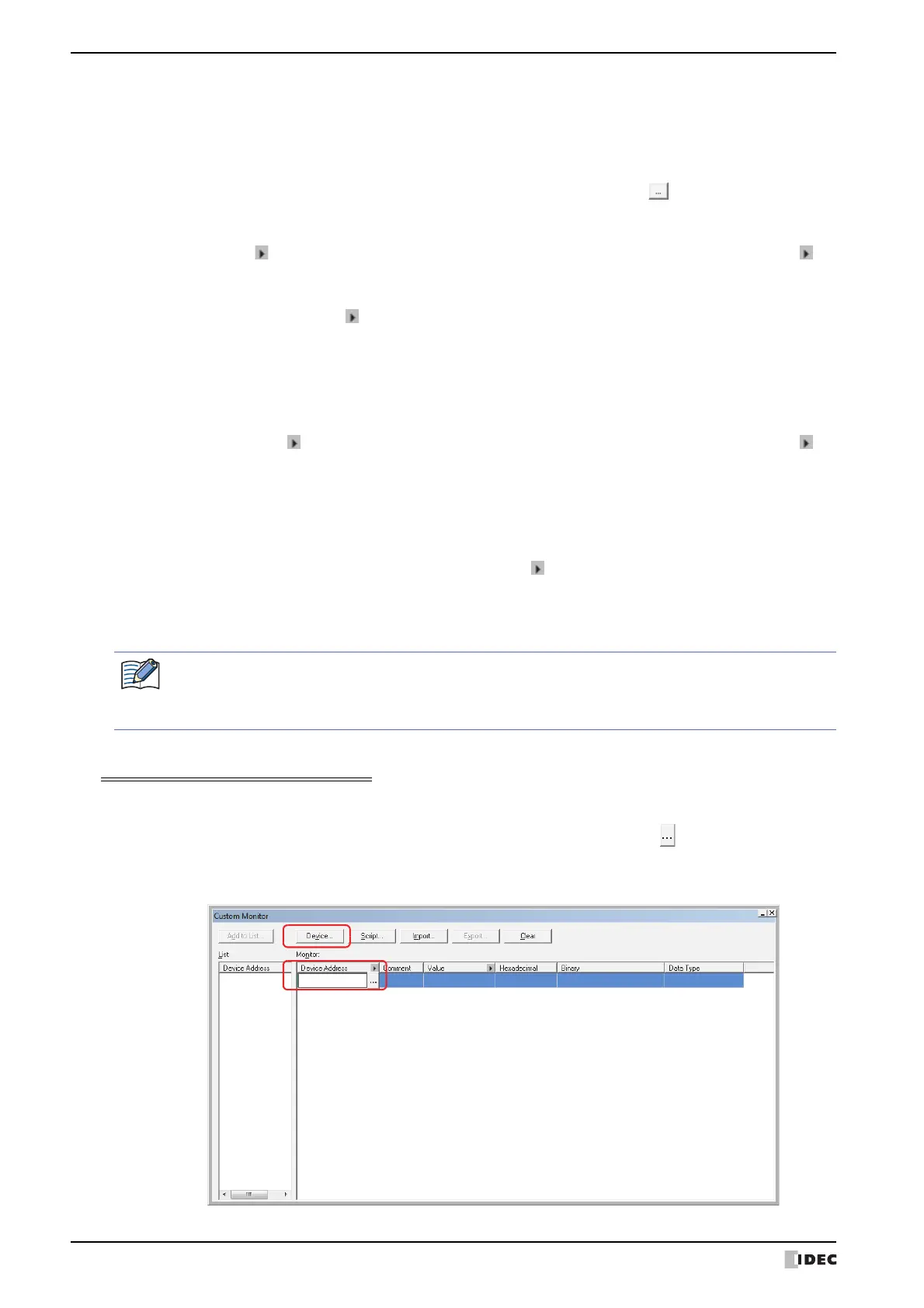Click Device. Or, double-click a cell under Device Address in Monitor, and then click .