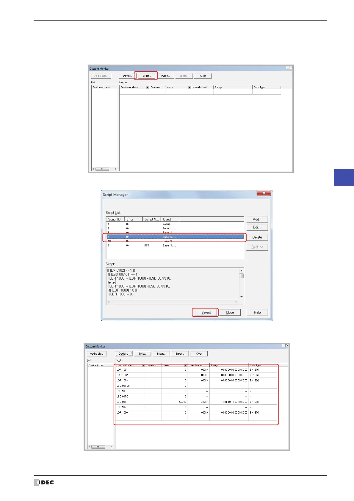 2 Select the script ID of the script for the device address to be batch-saved, and then click Select.