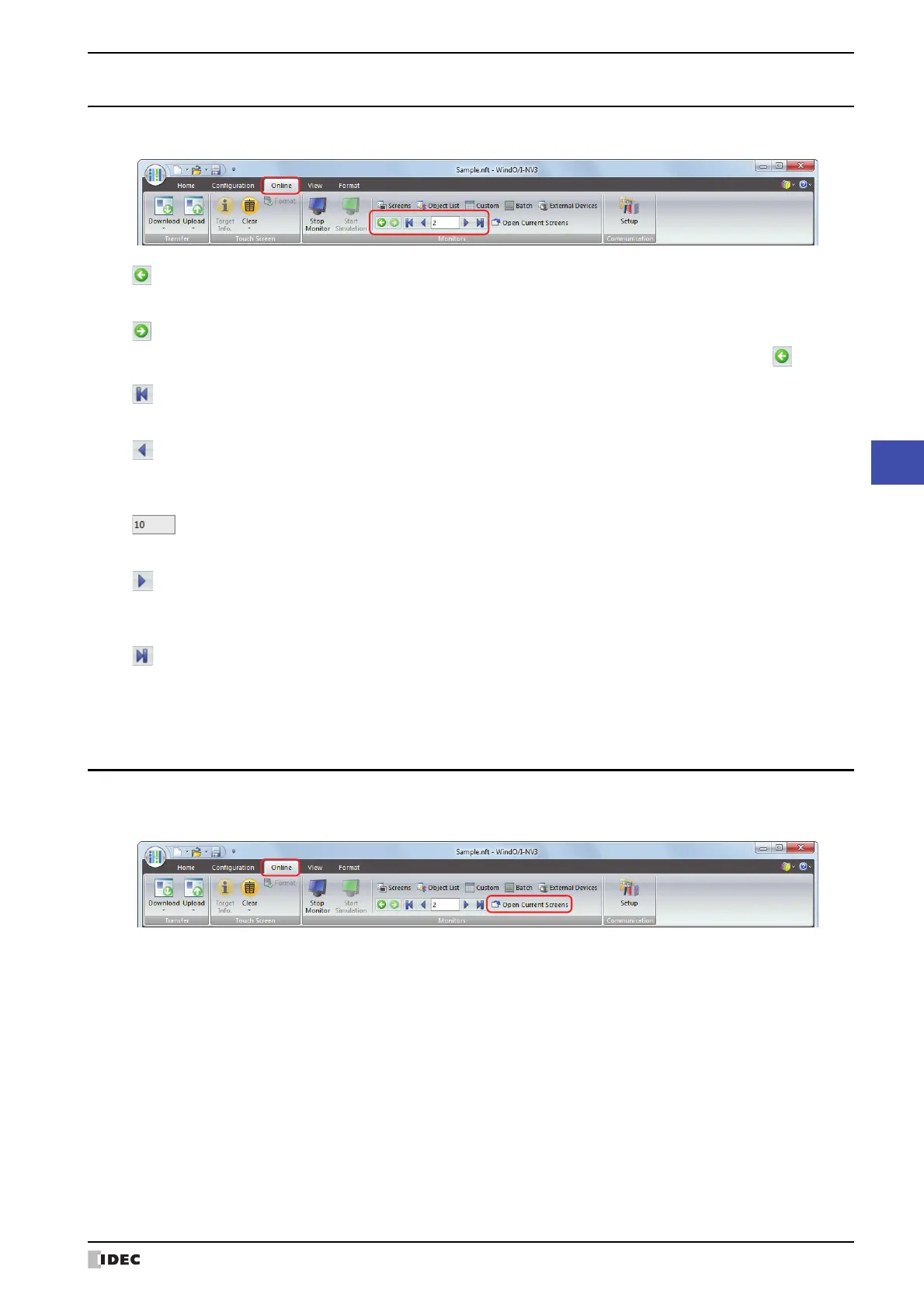 During monitoring, it is possible to switch to the screen displayed on the Touch using a WindO/I-NV3 command.