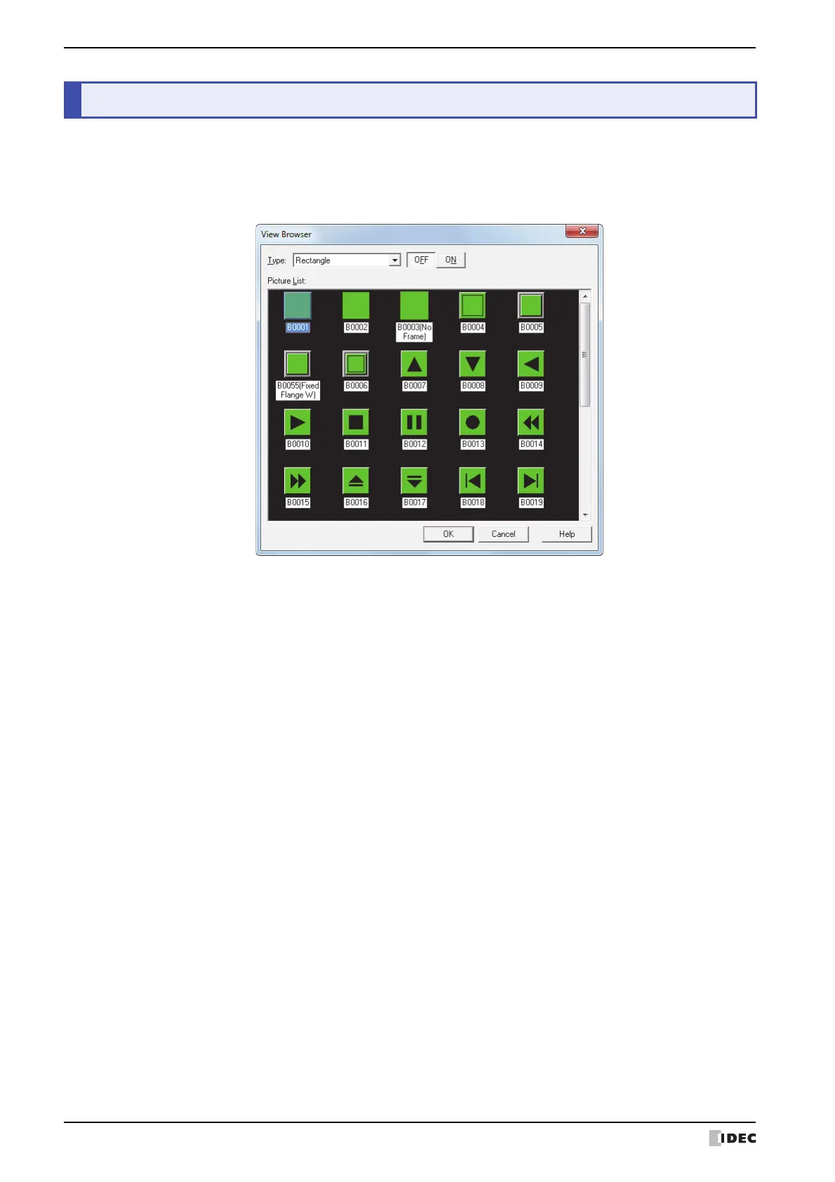 The View Browser displays the list of graphics that have been prepared in advance in WindO/I-NV3. The settings