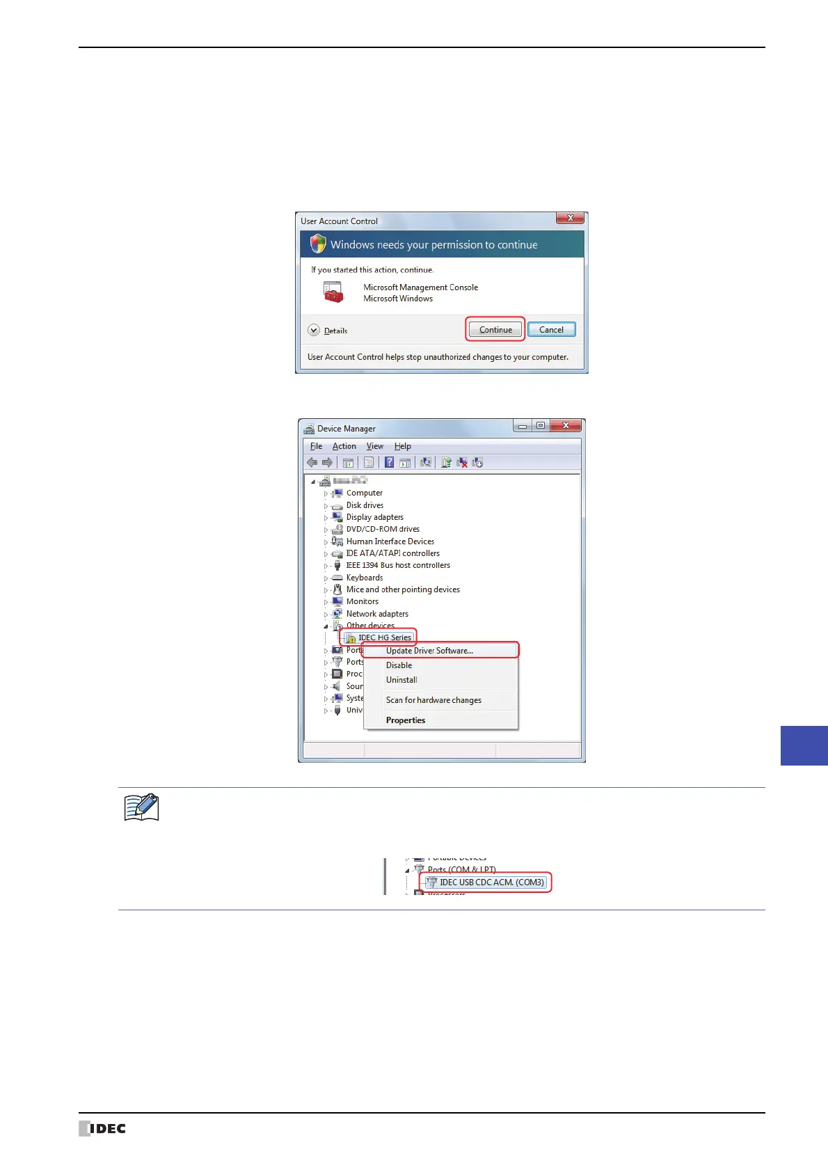 under Other devices, check Ports (COM LPT). If IDEC USB CDC ACM. (XXXX) (XXXX is the port