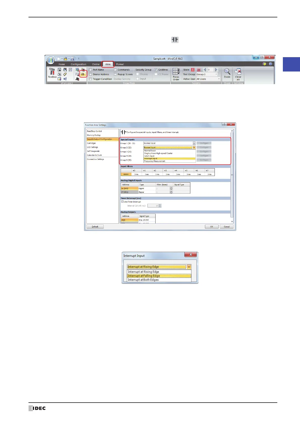 4 Select Interrupt Input Rising Edge, Interrupt Input Falling Edge or Interrupt Both Edges in the pull-down