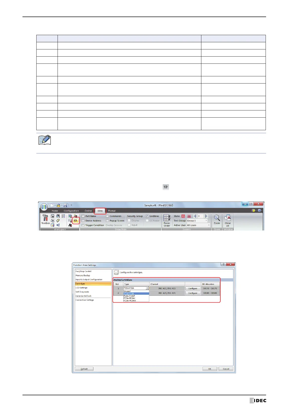 To use analog cartridges, you must configure it in the Function Area Settings tab and download the ladder