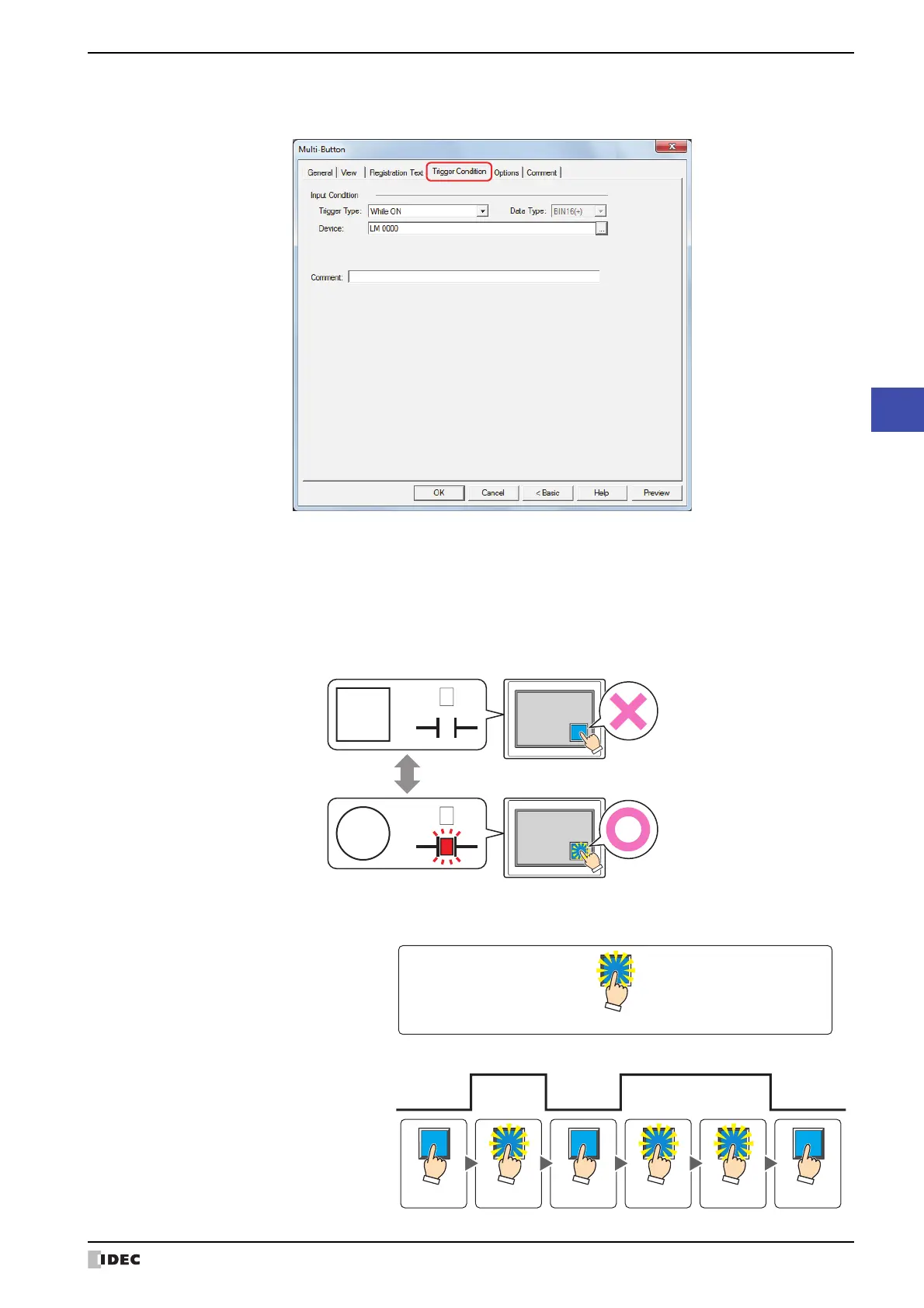 While LM0 is 1, the condition is satisfied and the Button is operational.