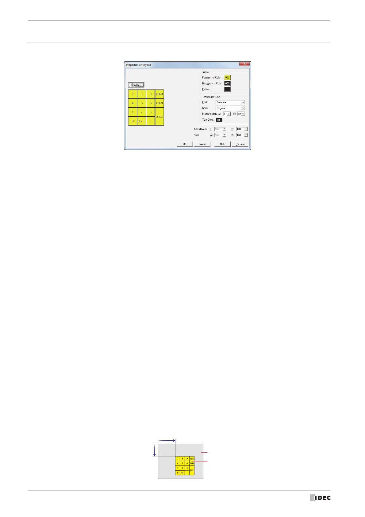 X and Y specify the upper left corner of the Keypad using the upper left corner of the screen as