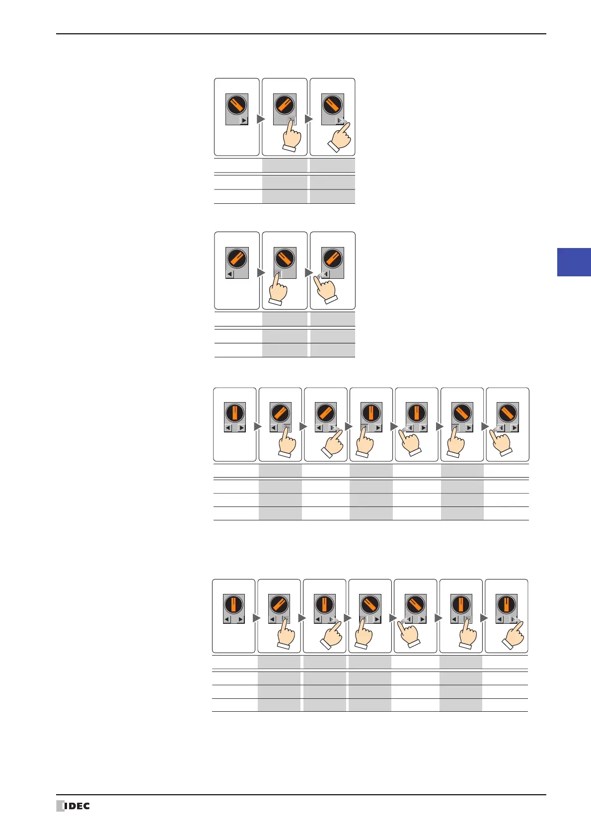 3-Notch No-return: The knob does not return when the operator's finger is released.
