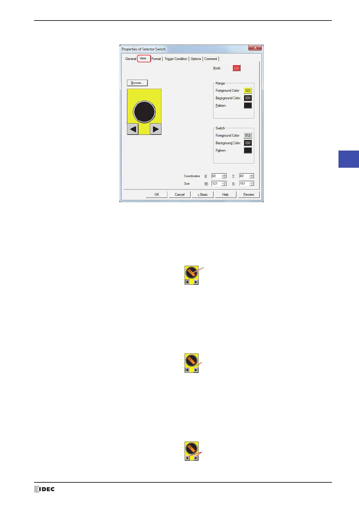 Selects the knob color of the Selector Switch (color: 256 colors, monochrome: 8 shades).