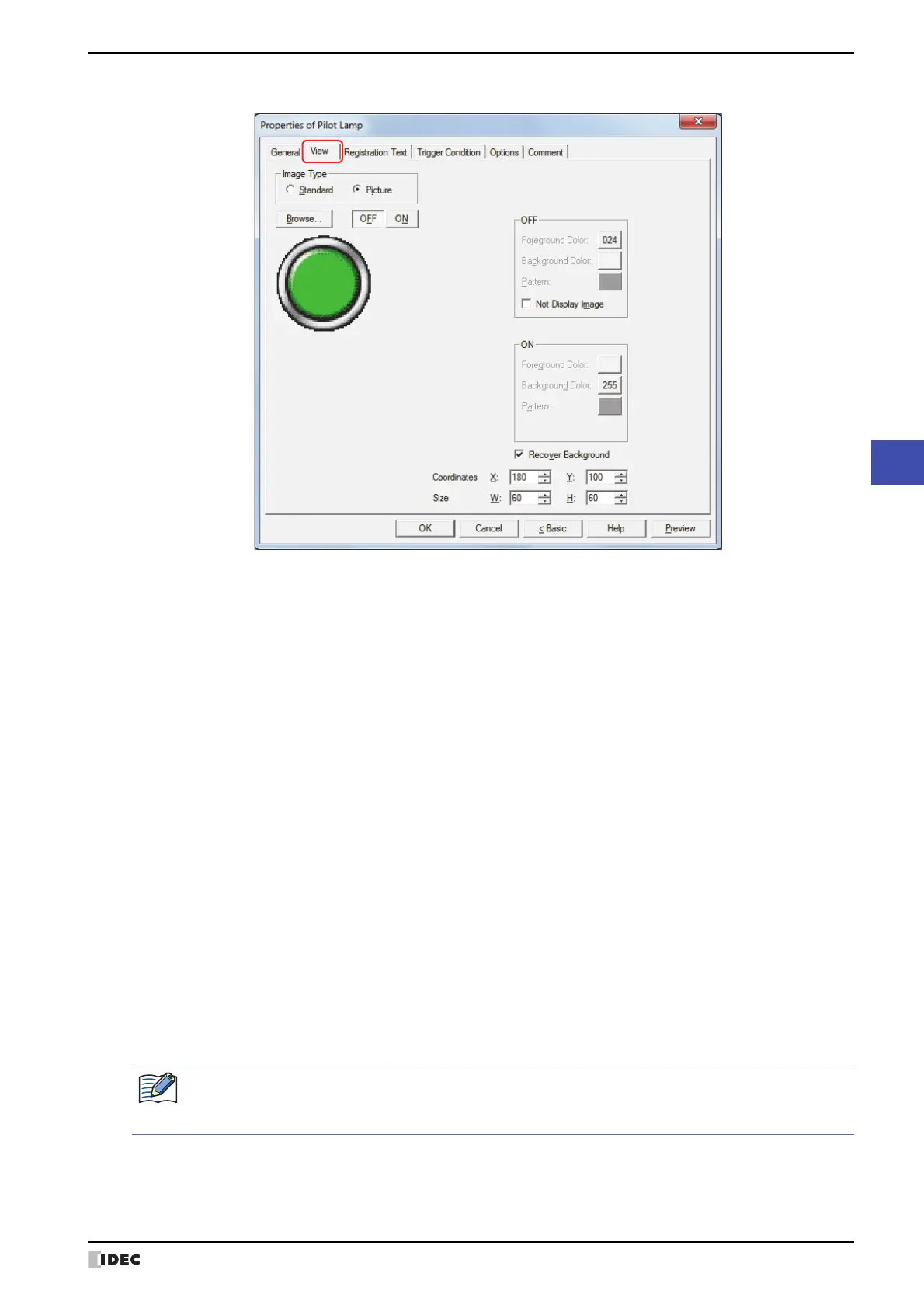 Displays the graphic when ON or OFF. Clicking the ON button or OFF button switches the image displayed on the