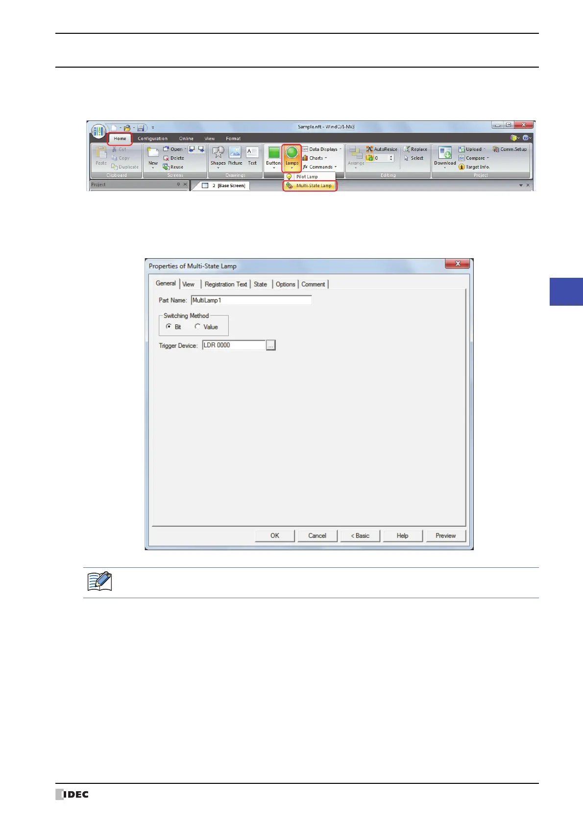 1 On the Home tab, in the Parts group, click Lamps, and then click Multi-State Lamp.