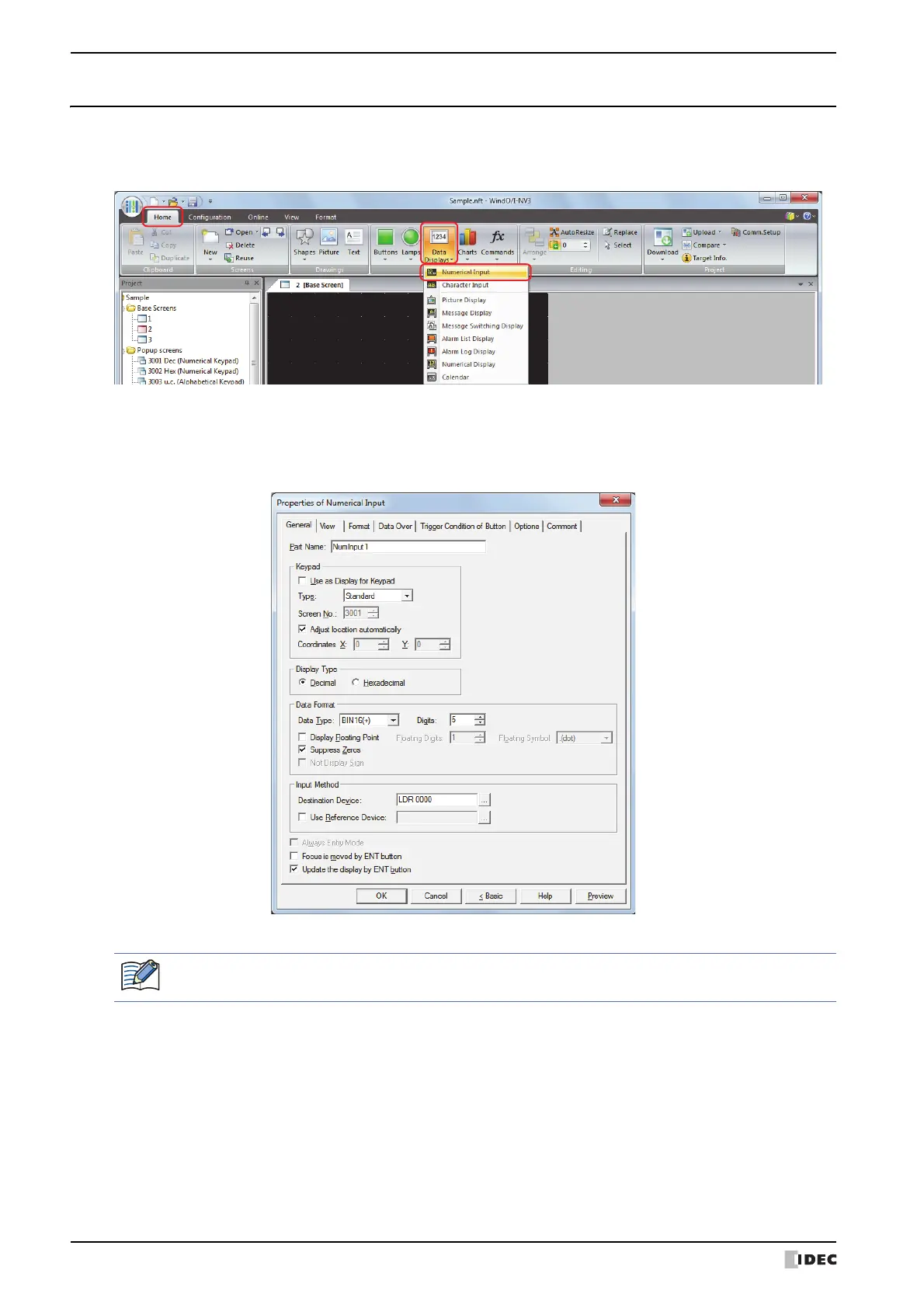1 On the Home tab, in the Parts group, click Data Displays, and then click Numerical Input.
