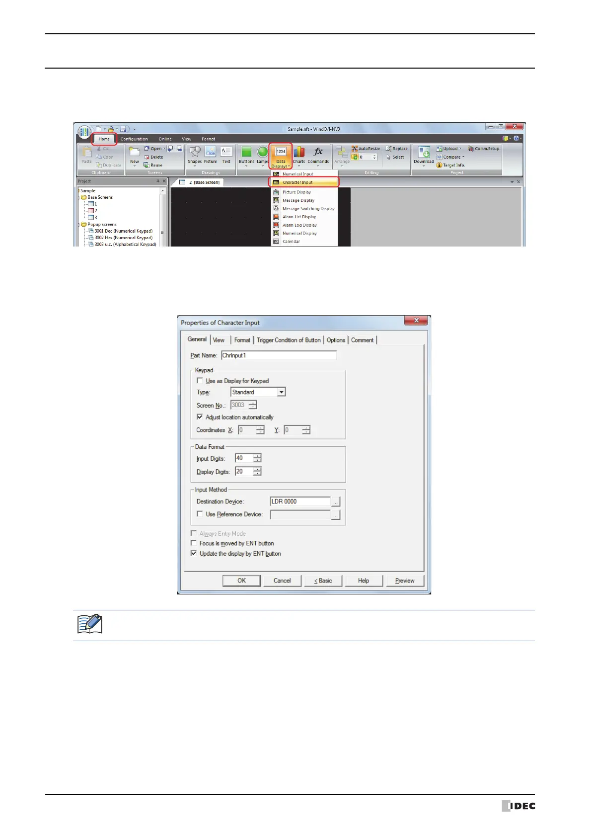1 On the Home tab, in the Parts group, click Data Displays, and then click Character Input.