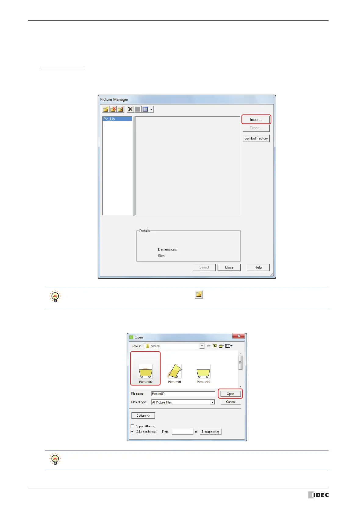 This section describes how to save drawing objects in Picture Manager. Saved graphic elements can be used for part