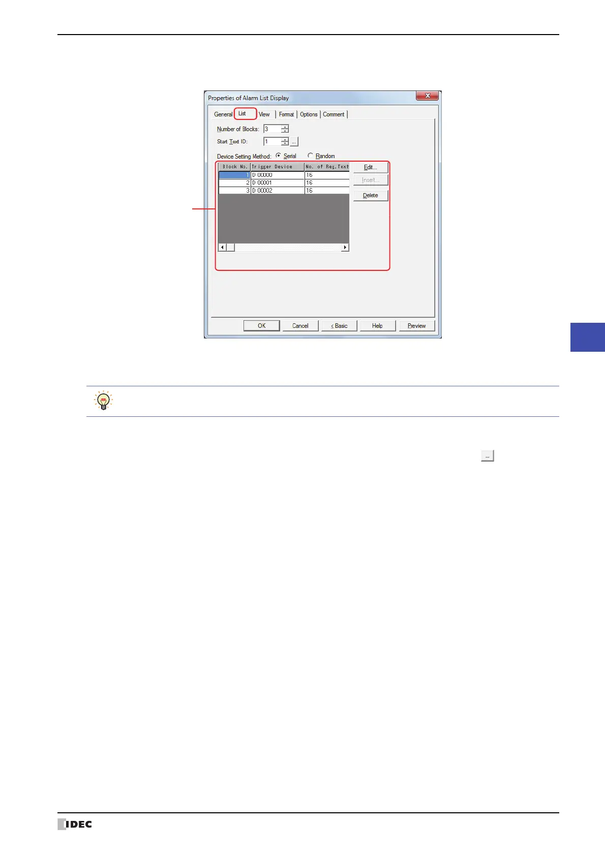 When Serial is selected for Device Setting Method, the trigger devices for block numbers after