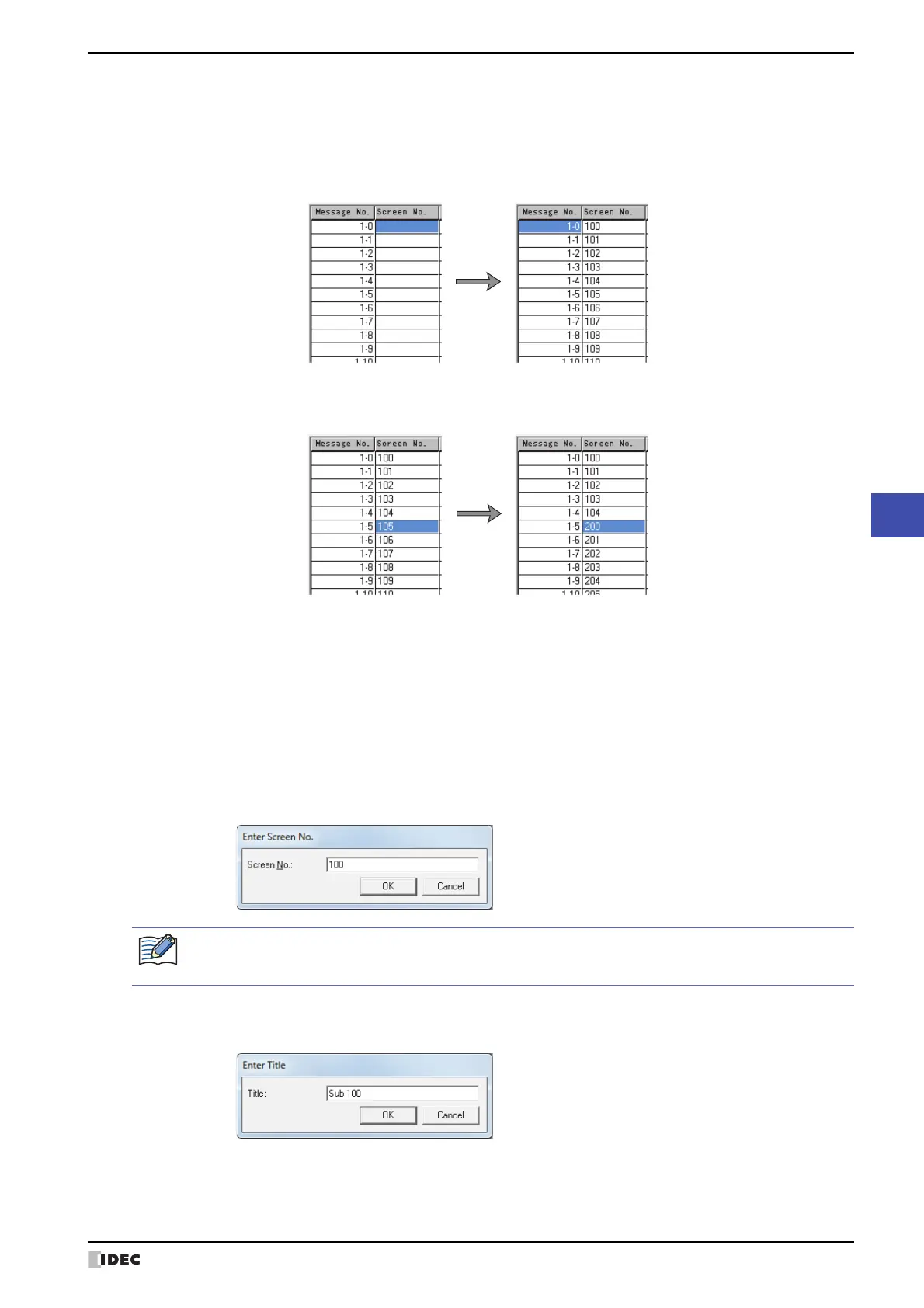 Screen numbers “100”, “101”, “102”....are automatically specified in order from message
