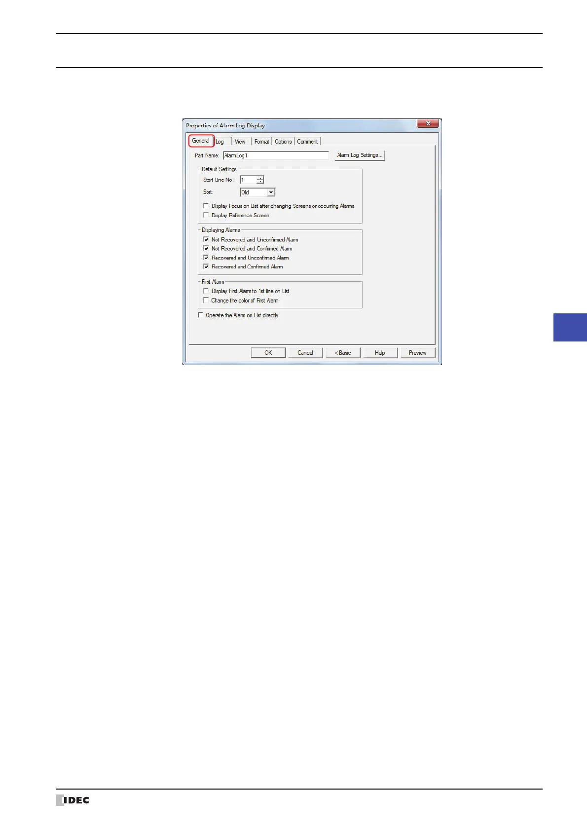 Start Line No.: Specifies what number alarm to display when multiple alarms have occurred.