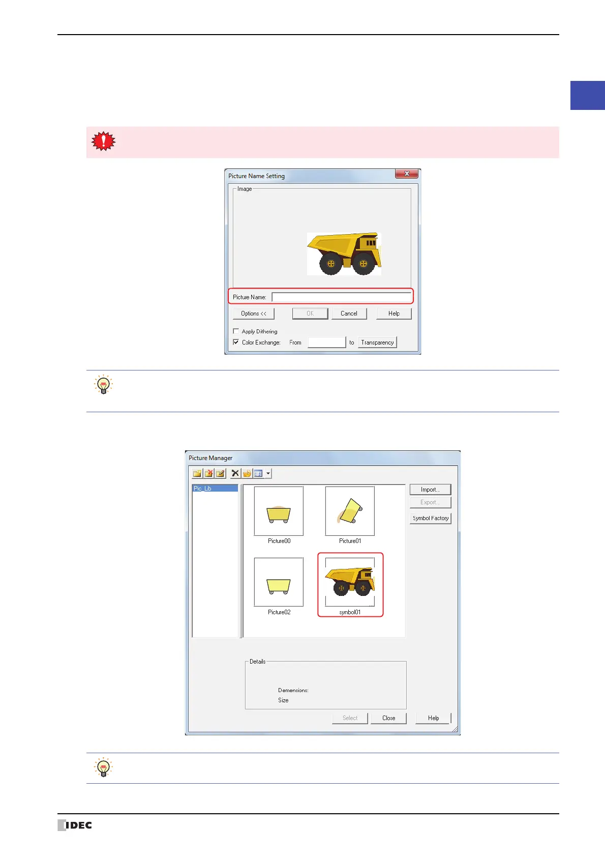 toggle between showing and hiding the items. For details, refer to “Picture Name Setting dialog box” on