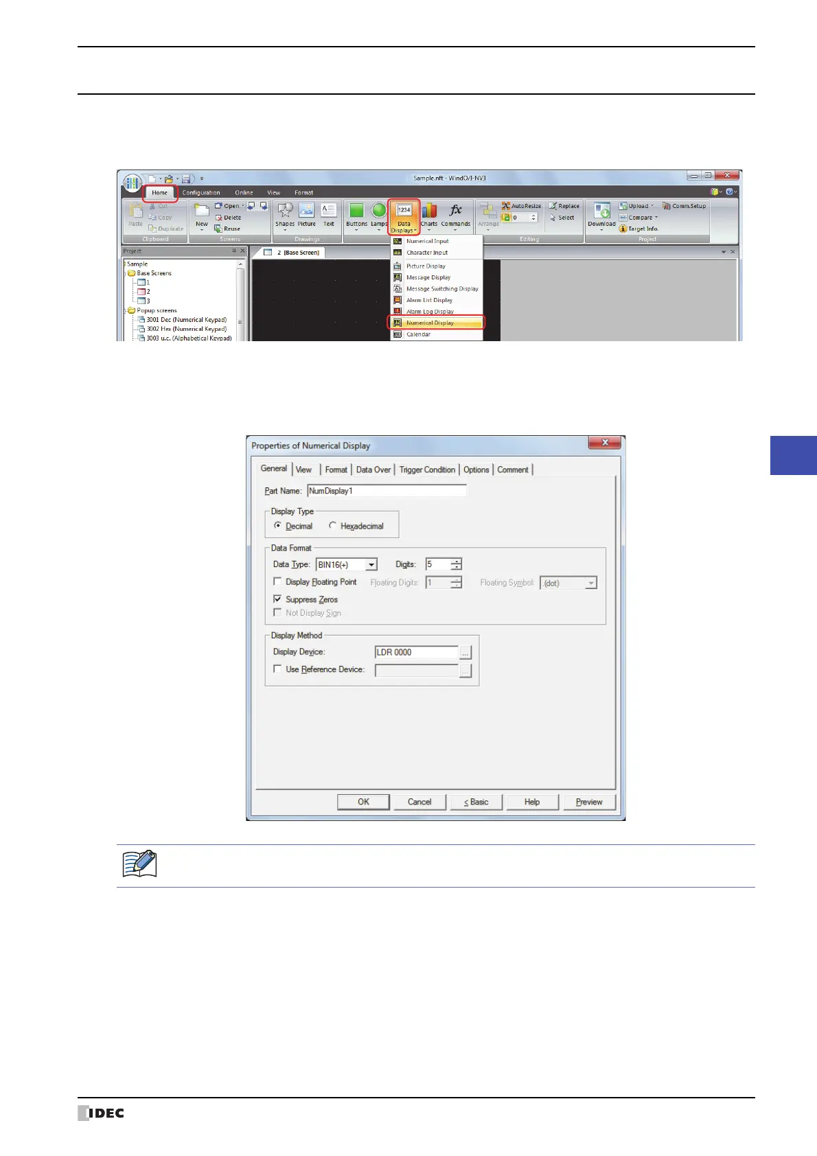 1 On the Home tab, in the Parts group, click Data Displays, and then click Numerical Display.