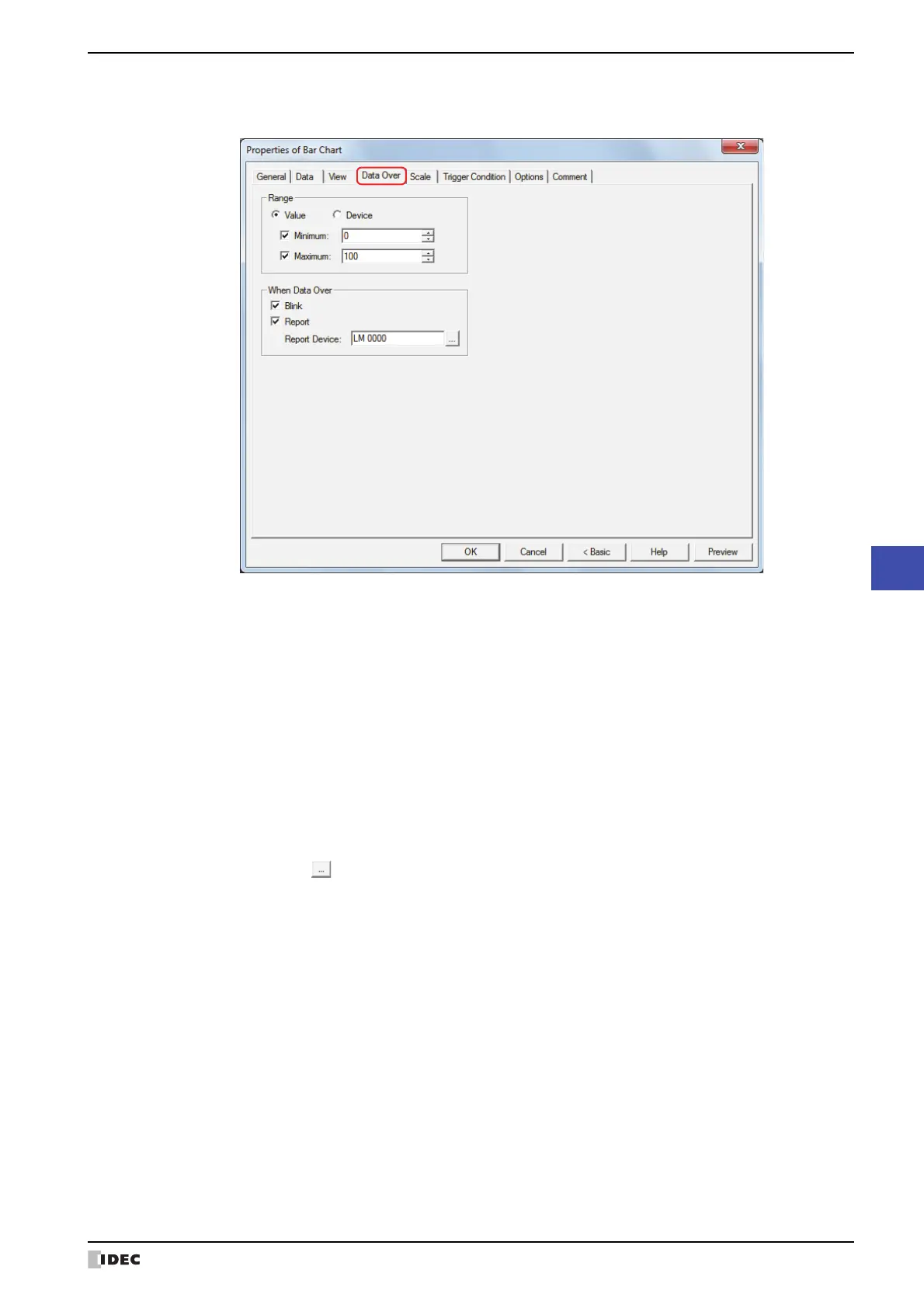 Device: Specifies the minimum and/or the maximum as a value of word device.