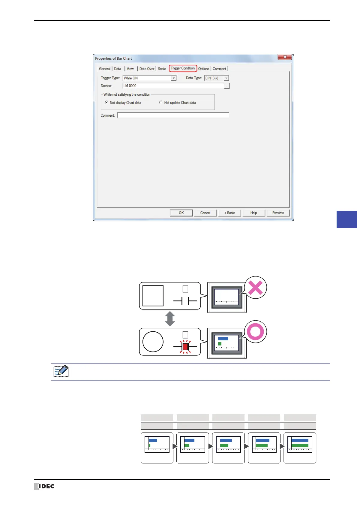 While LM0 is 1, the condition is satisfied and the bar chart is displayed.