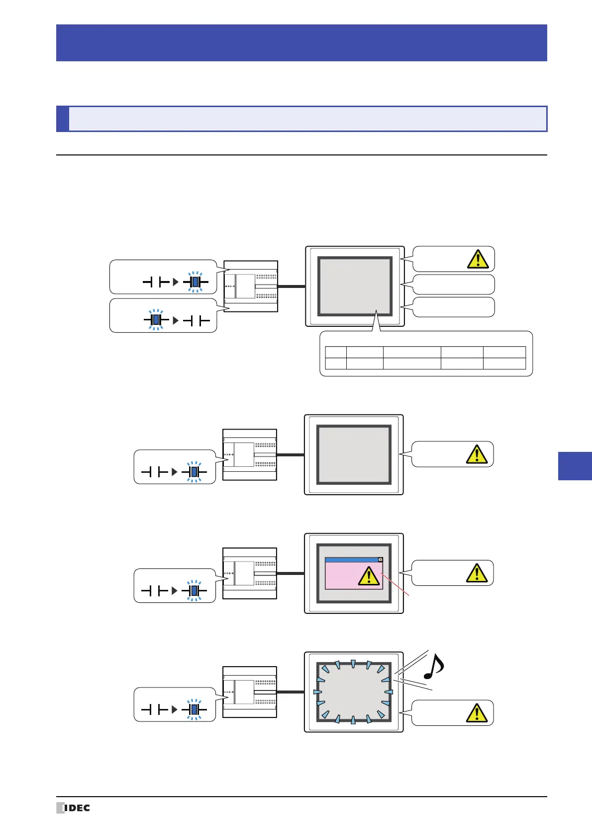 • Make a sound of the buzzer and screen flashing the screen when an alarm occurs