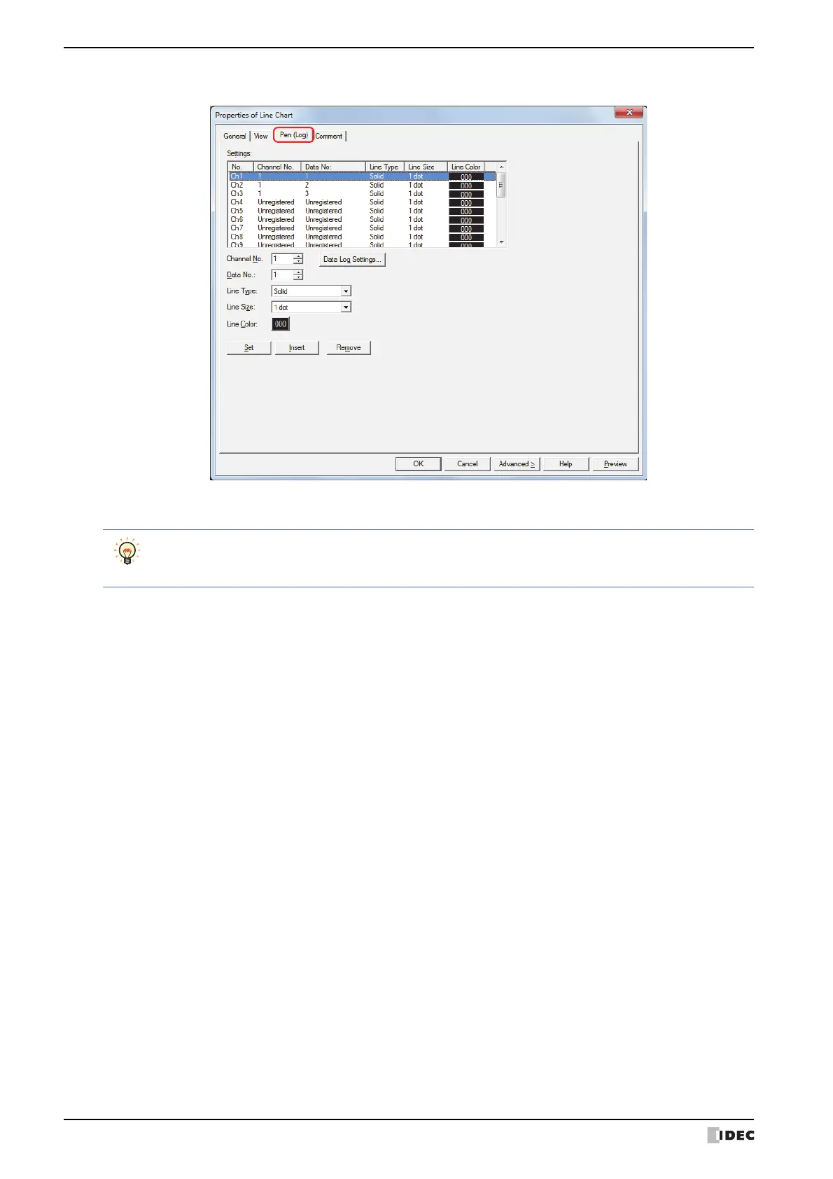 while checking the data to display. Select Channel No. under Settings, and then click OK to close the