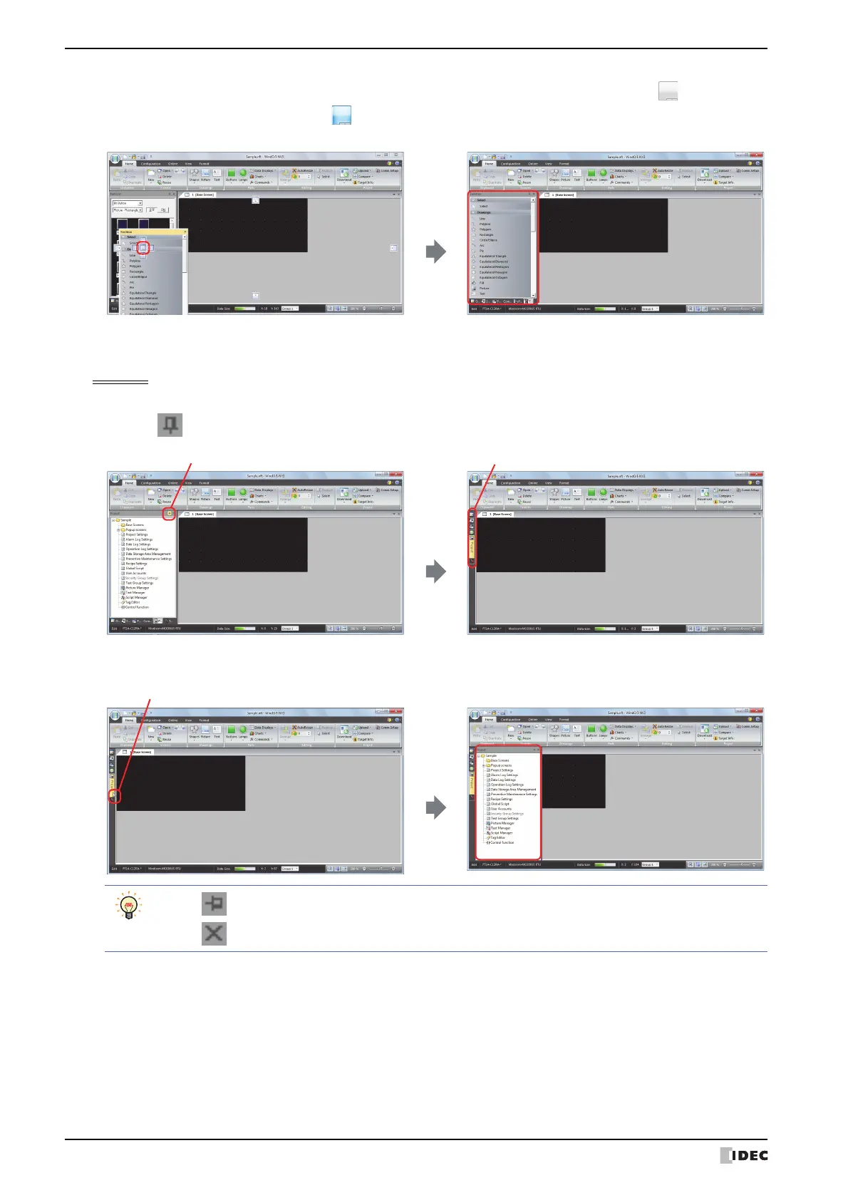 • If you put the mouse cursor on another window while dragging a floating windows title bar, the (Docking) icon