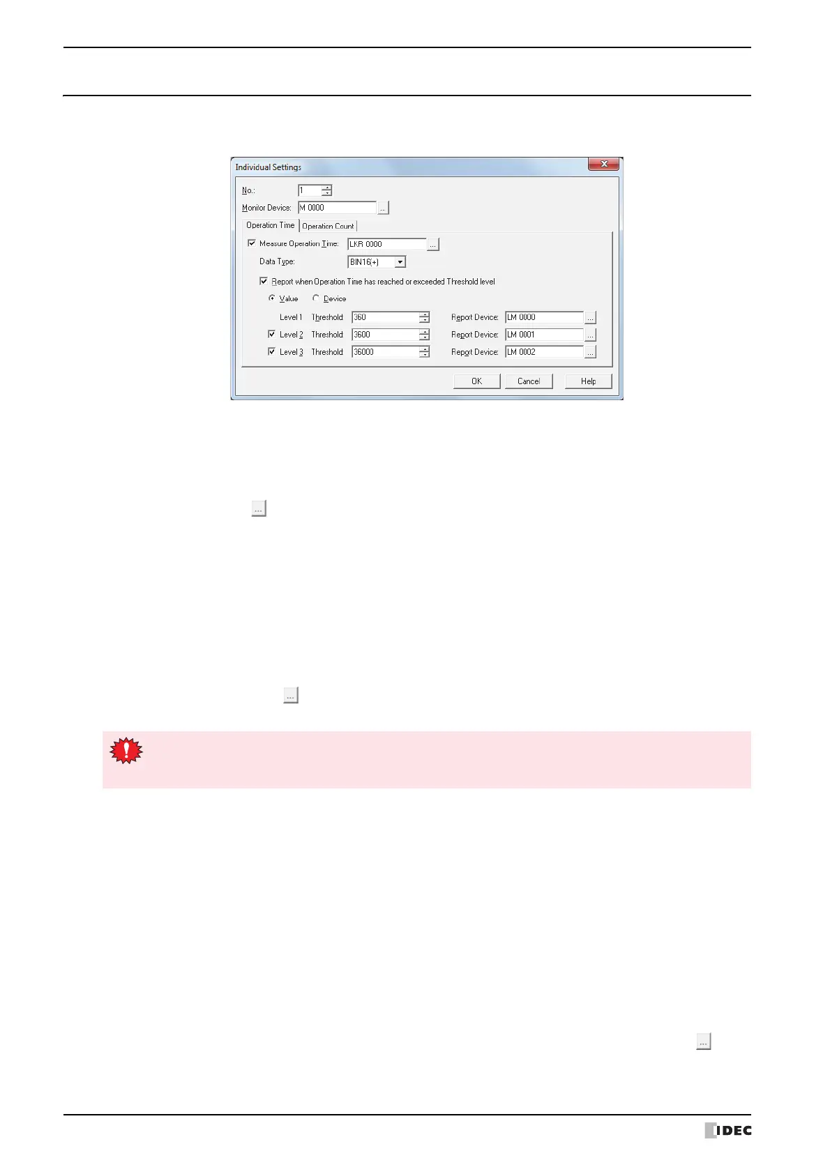 The Individual Settings dialog box is used to configure the operation time and operation count settings for each