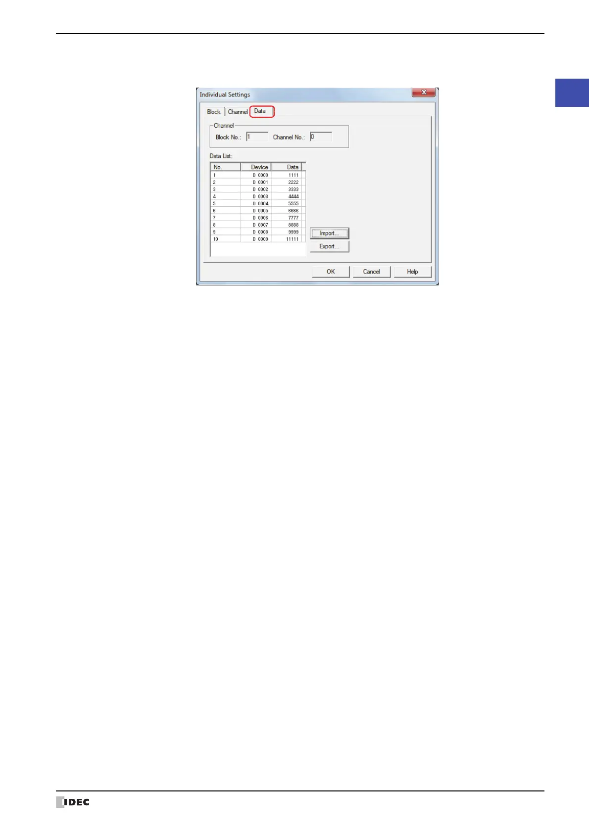 No.: Shows the data numbers for the amount of data specified by Number of Data.