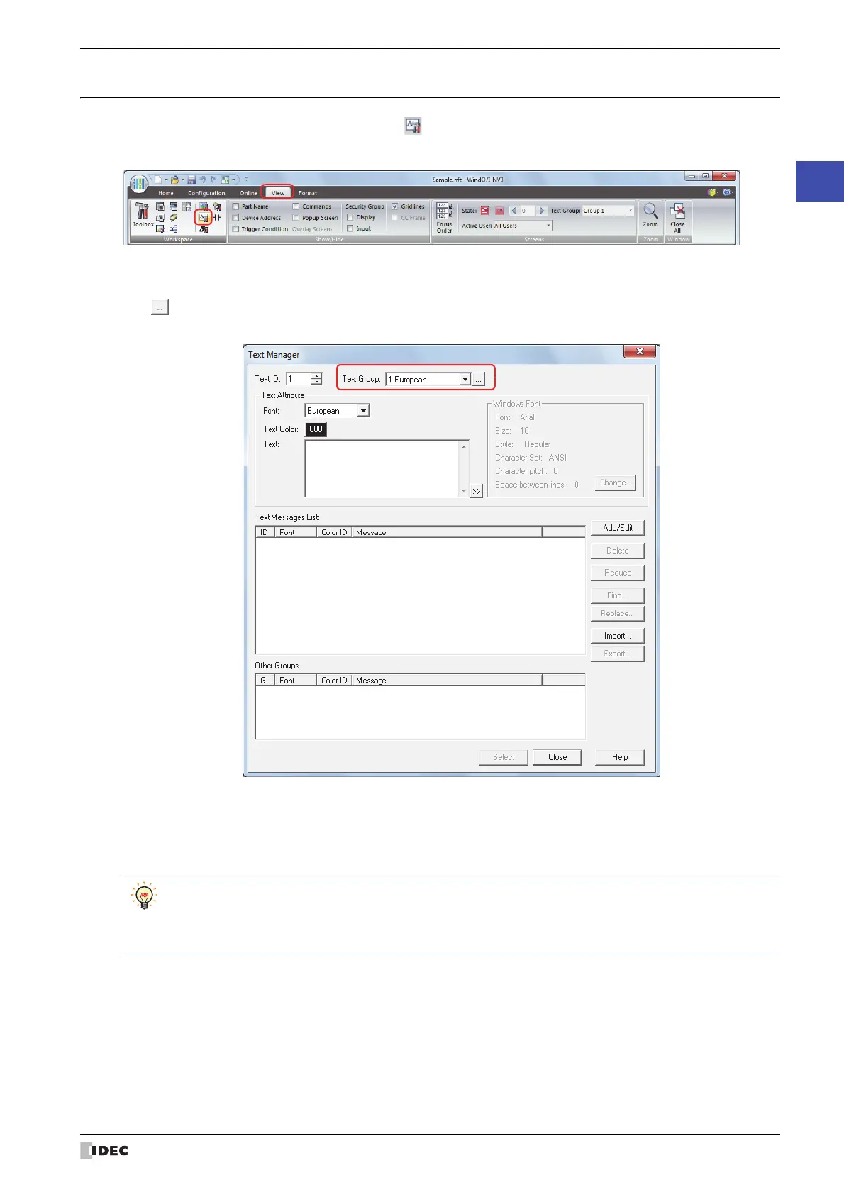 Click to display the Text Group Settings dialog box. For details, refer to “Text Group Settings Dialog Box” on page
