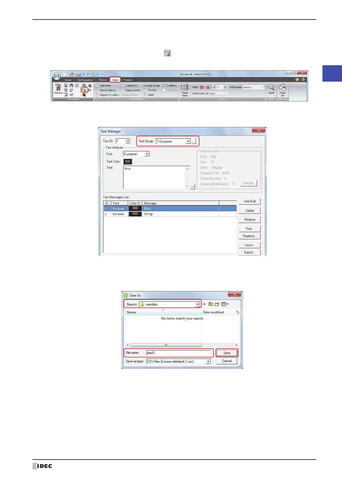 To use registered text in another project, save the text as a CSV file or as a text file. This file is called a text list.