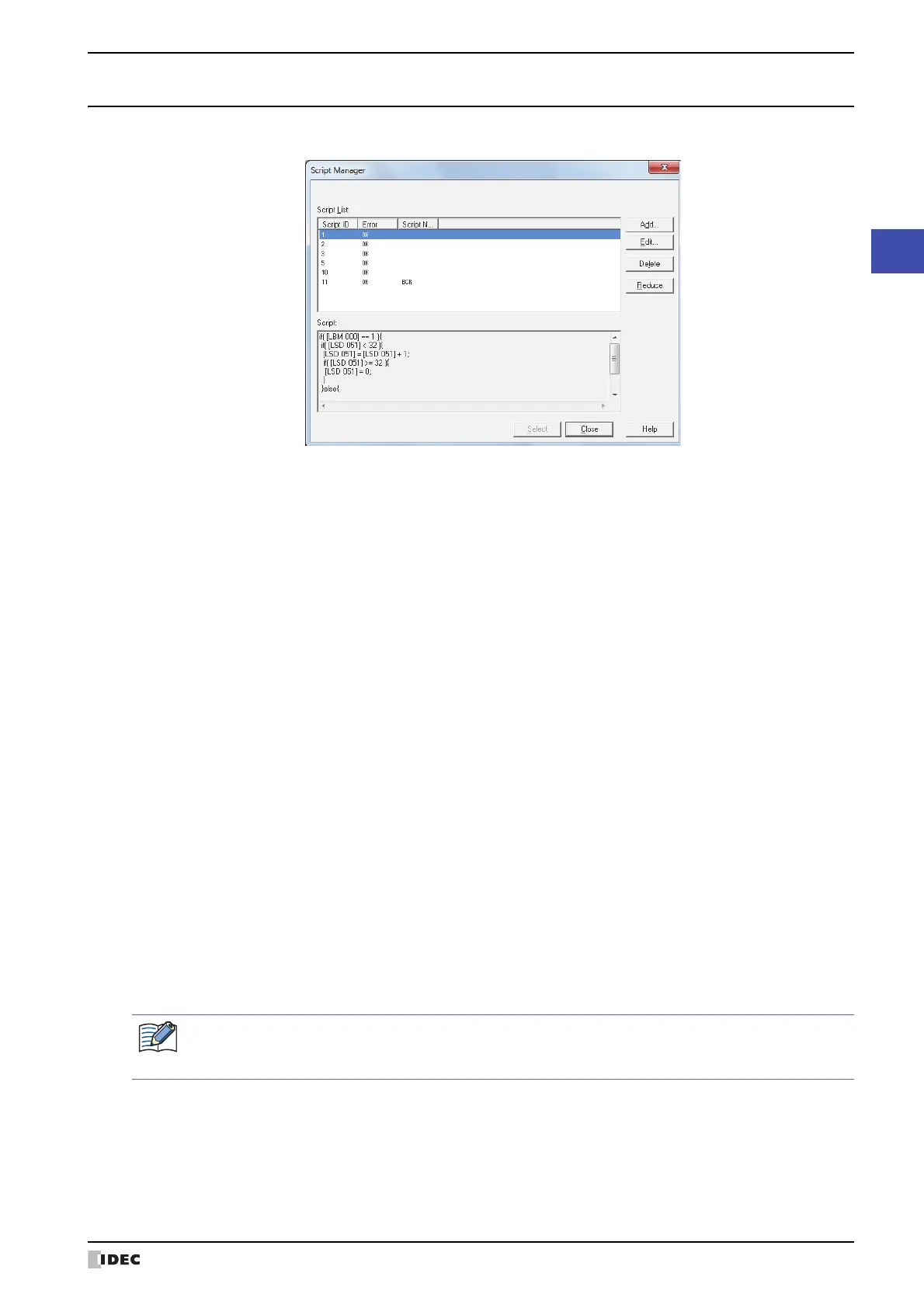 Displays the Script Editor dialog box to allow editing of the selected script. For details, refer to “2.3 Script Editor” on