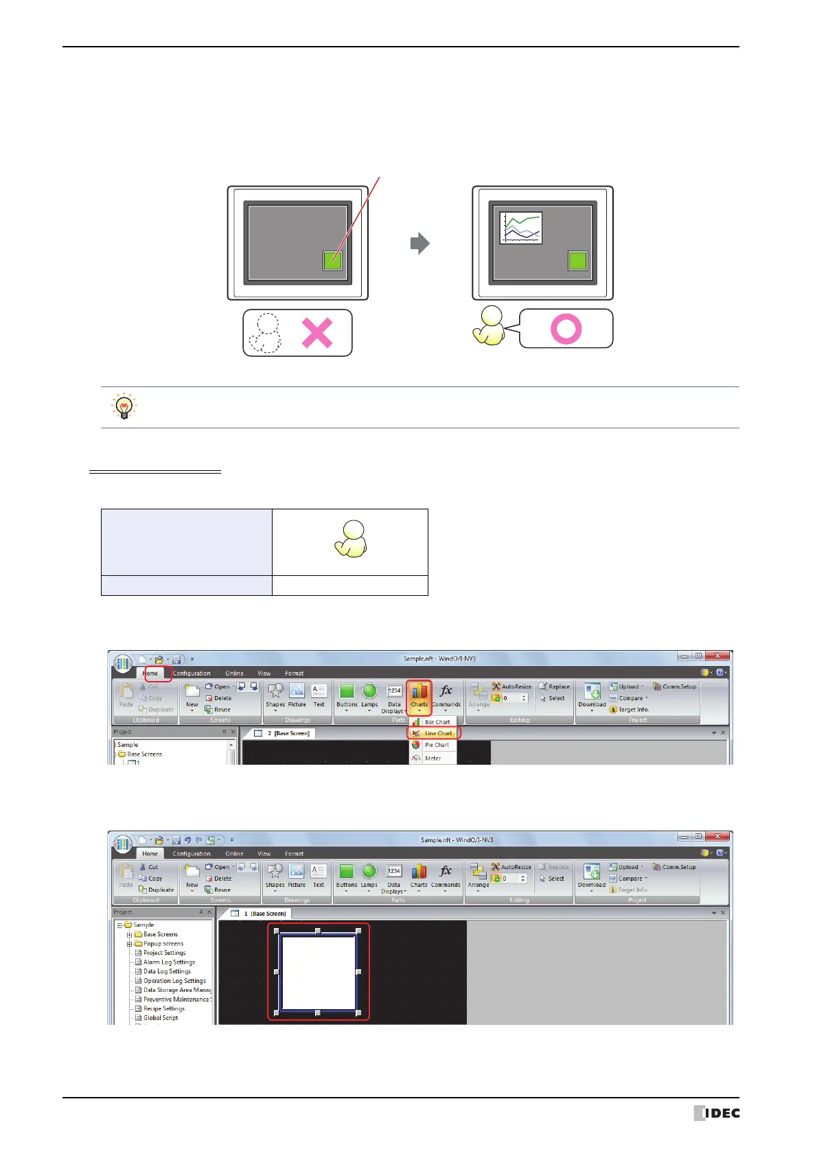 3 Click a point on the edit screen where you want to place the Line Chart.