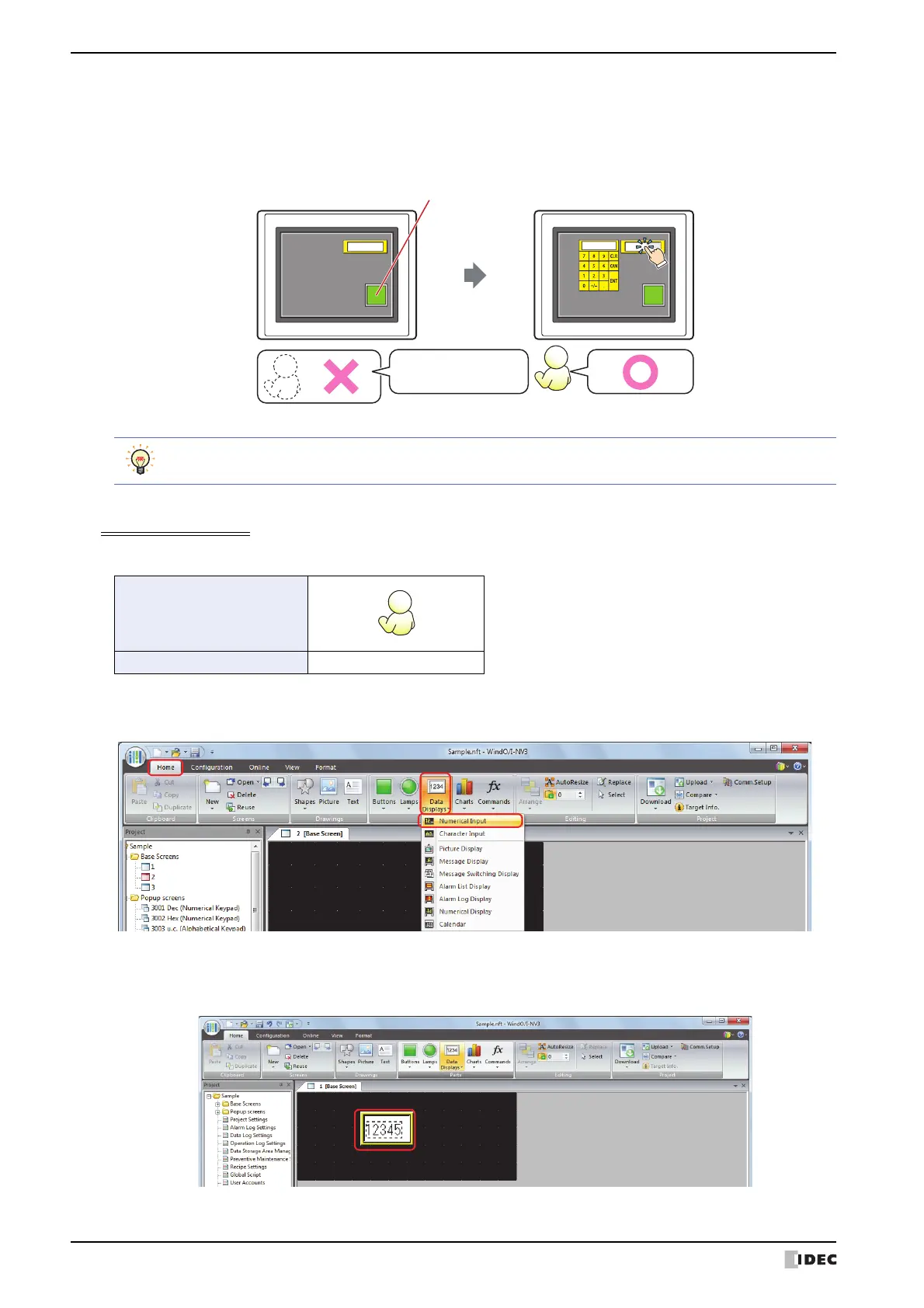3 Click a point on the edit screen where you want to place the Numerical Input.