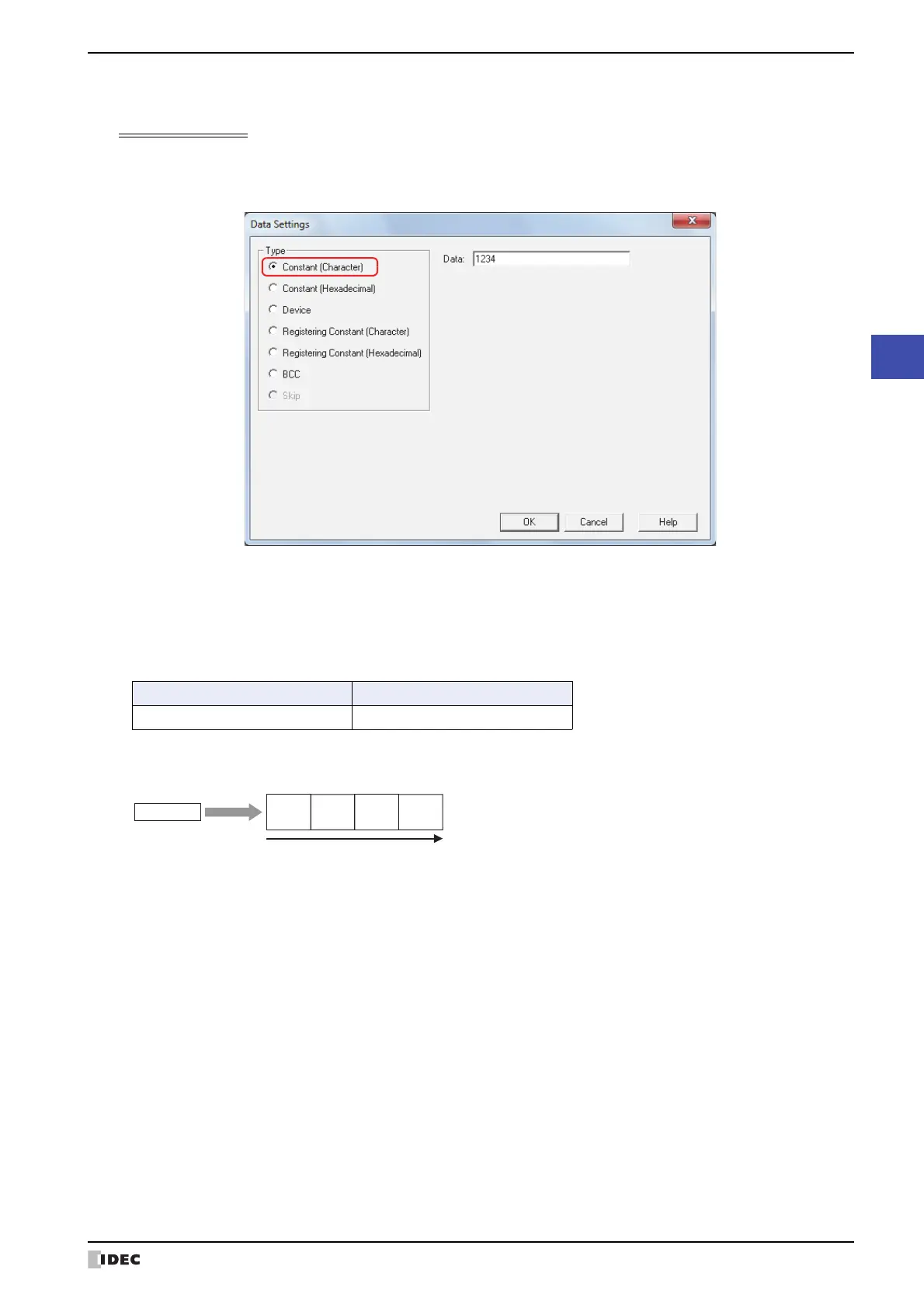 Constant (Character) is selected under Type on the Data Settings dialog box.