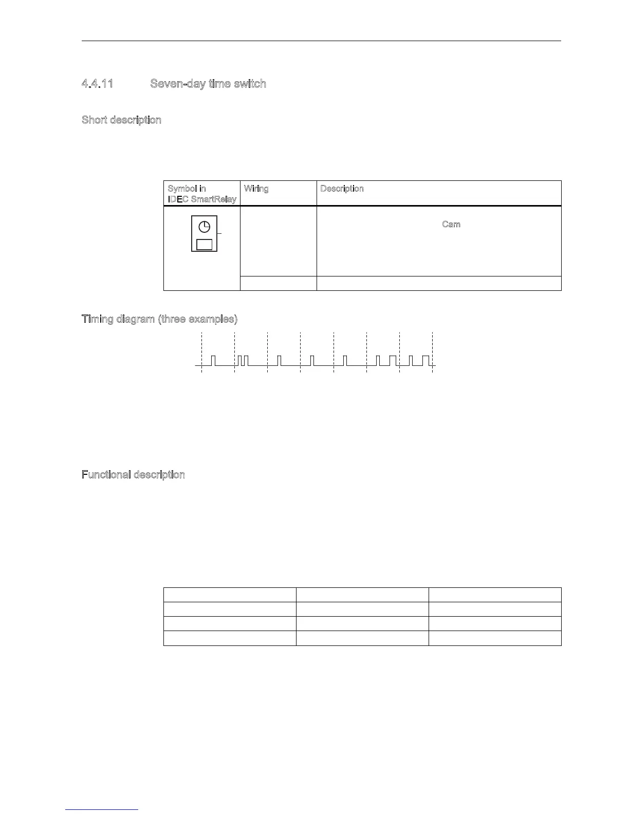 specify the on- and off-times at the Cam parameters. The seven-day time switch sets the
