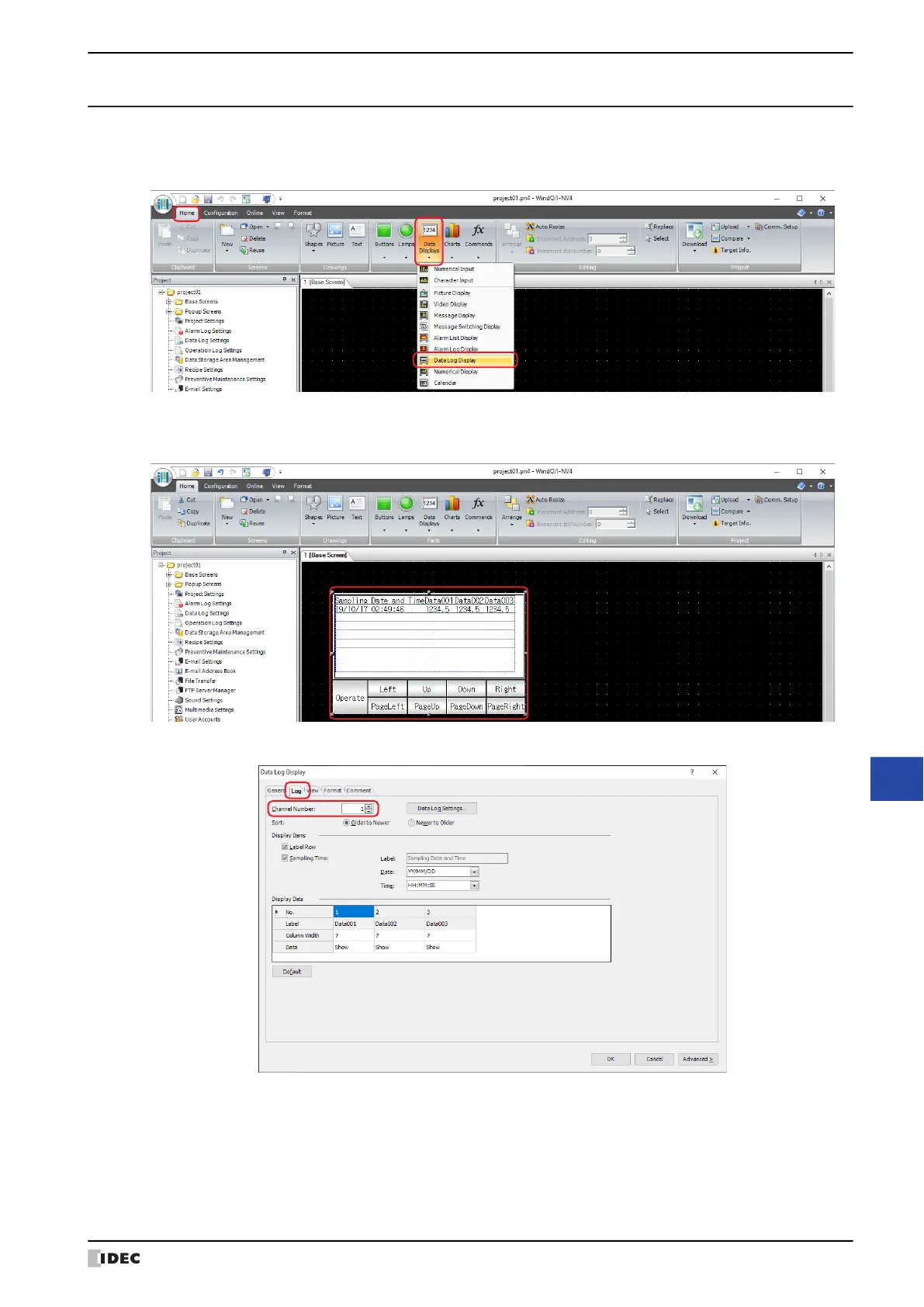 1 On the Home tab, in the Parts group, click Data Displays, and then click Data Log Display.