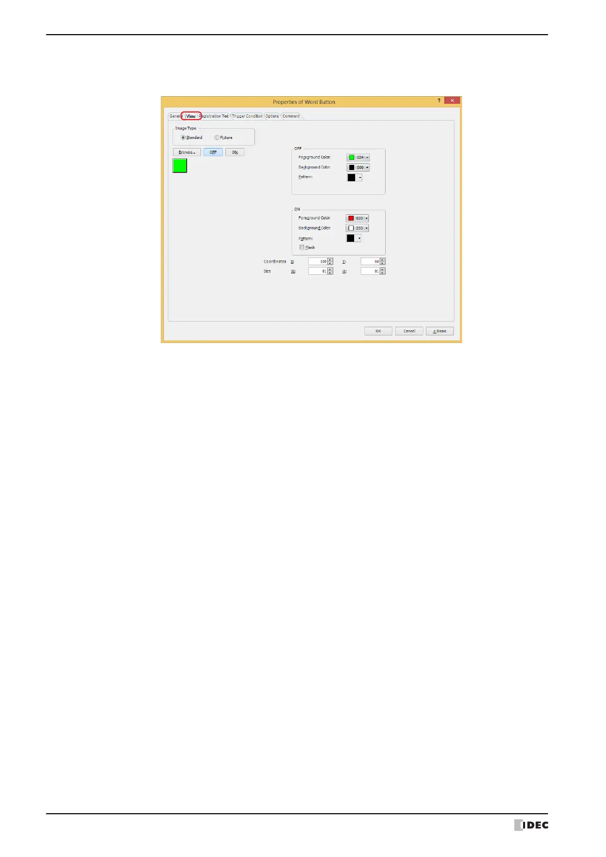Displays the graphic when ON or OFF. Clicking ON or OFF switches the image displayed on the View tab.