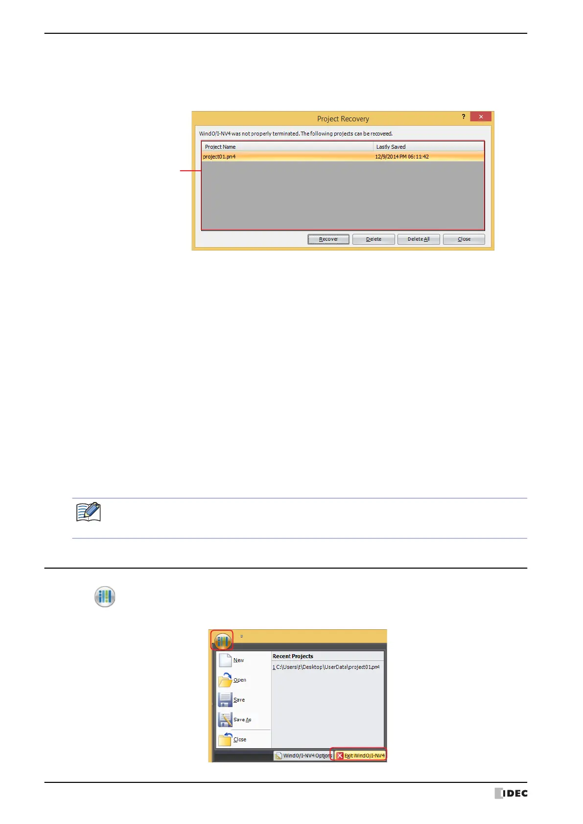 being edited. The Project Recovery dialog box is displayed if there is crashed project data when WindO/I-NV4 starts.