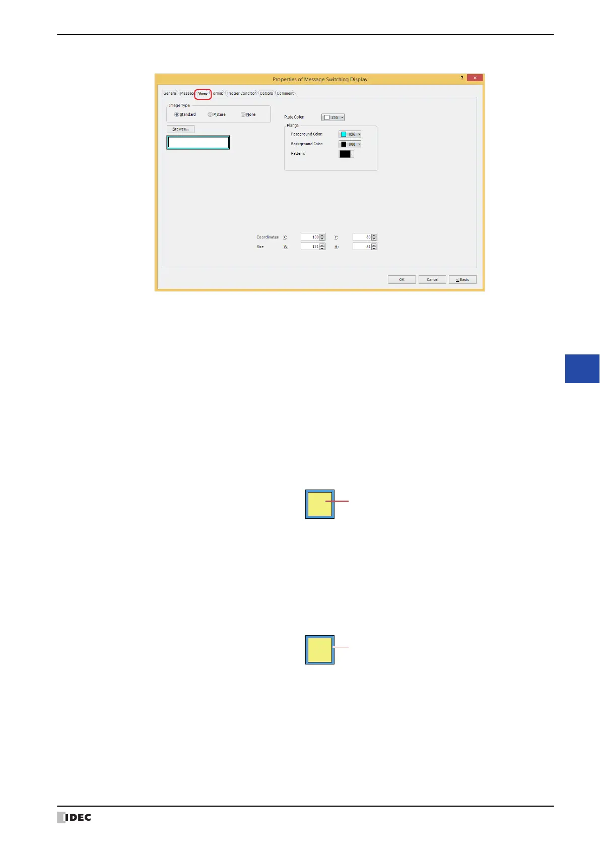 Foreground Color, Background Color: Selects the foreground and background colors of the flange of the standard