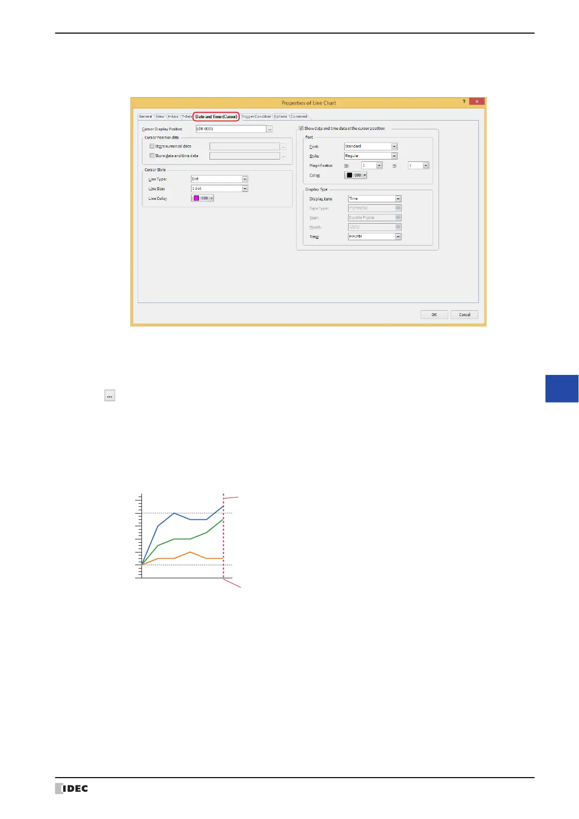 The Date and Time (Cursor) tab is displayed only when Log Trend (Normal) or Log Trend (Pen Recorder) is