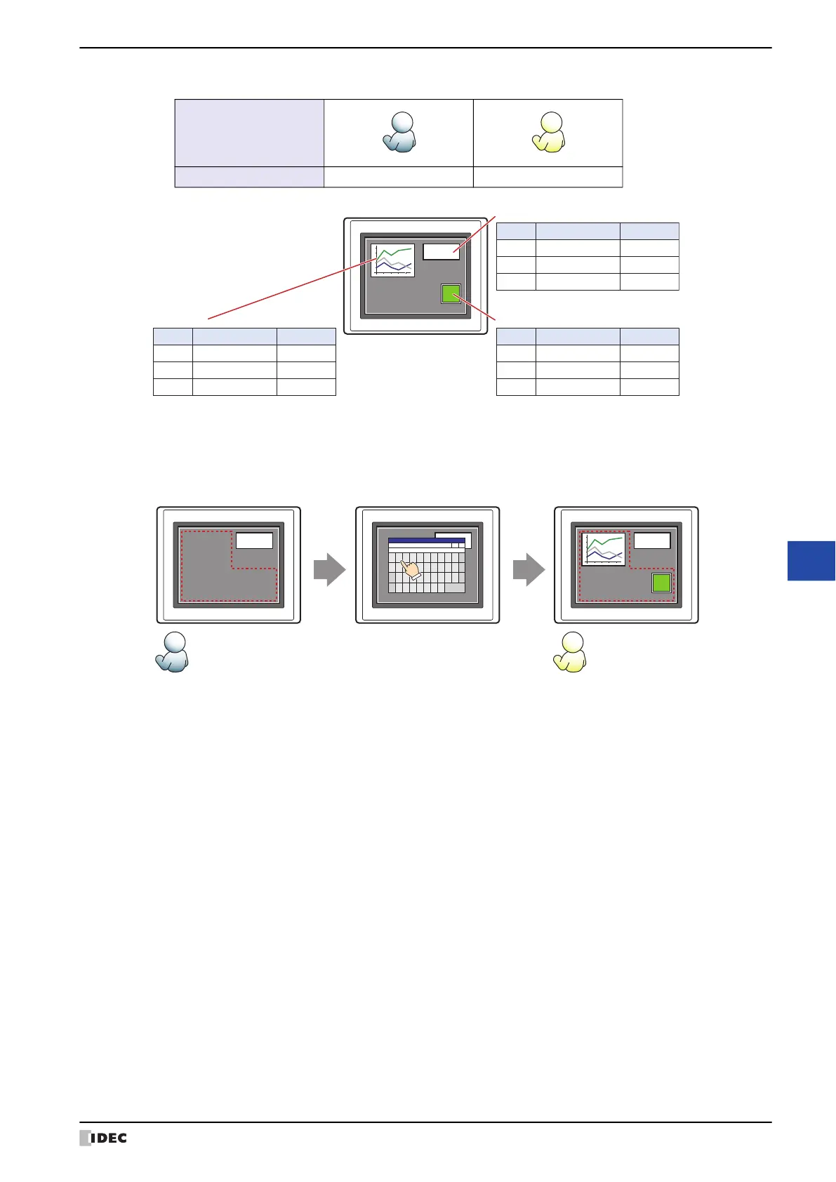 If the password screen is opened and the user switches to User2 in the Operator security group, the parts for which