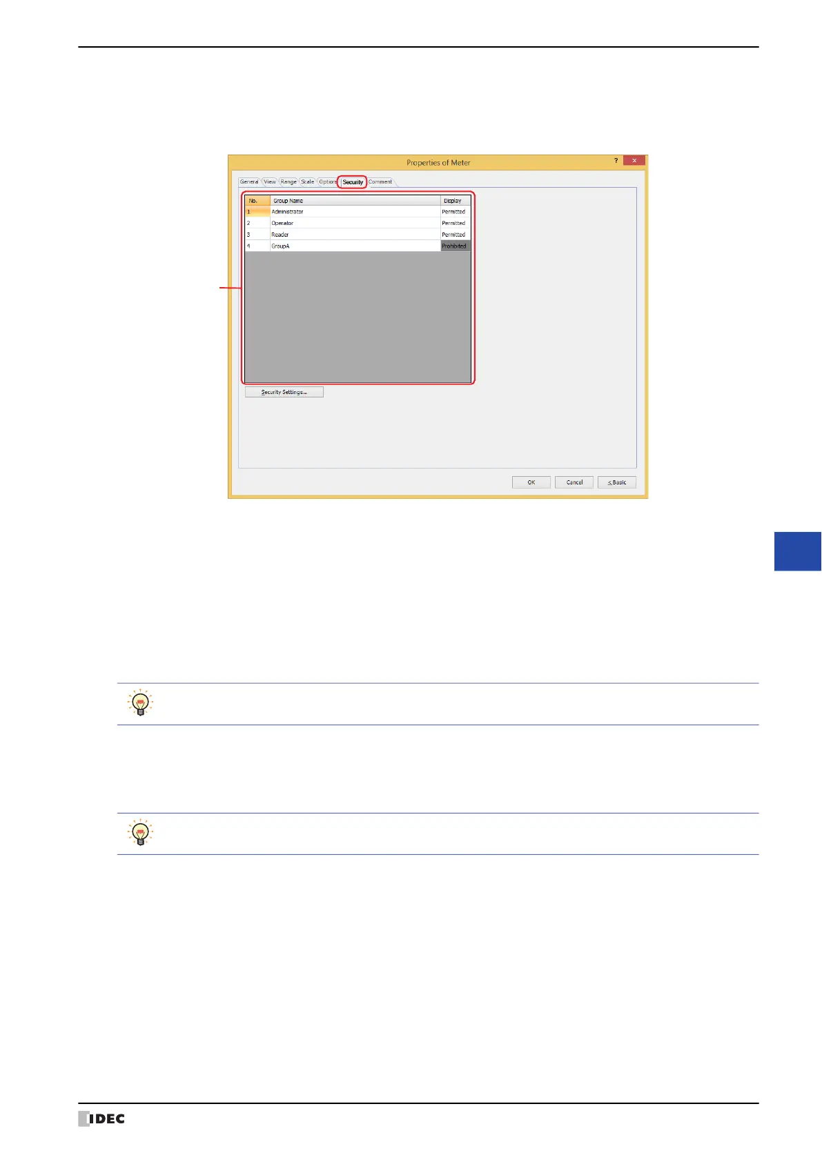 can display this part. If all security groups are set to Permitted, this part will be displayed even