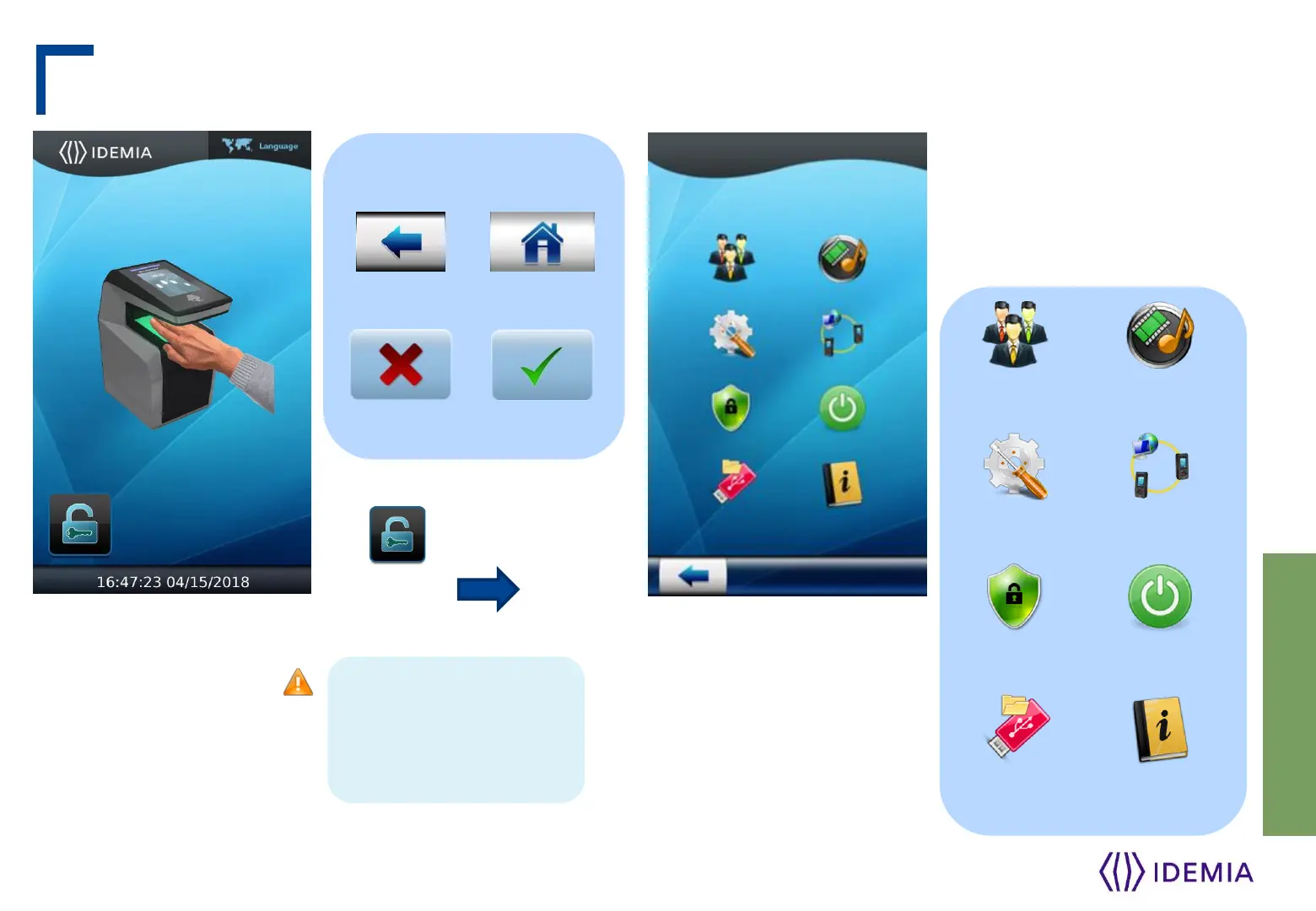Idemia MorphoWave Compact - Local Administration - Using Touch Screen Menu; Frequently Used Icons