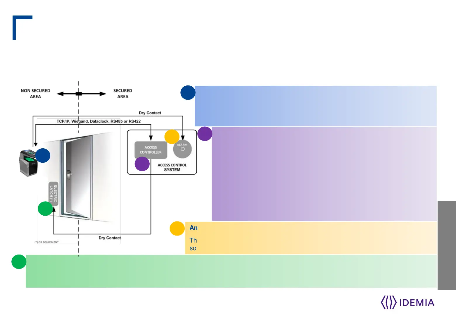 To secure an access, IDEMIA recommends installing the MorphoWave Compact terminal as a part of a typical Access Control system,