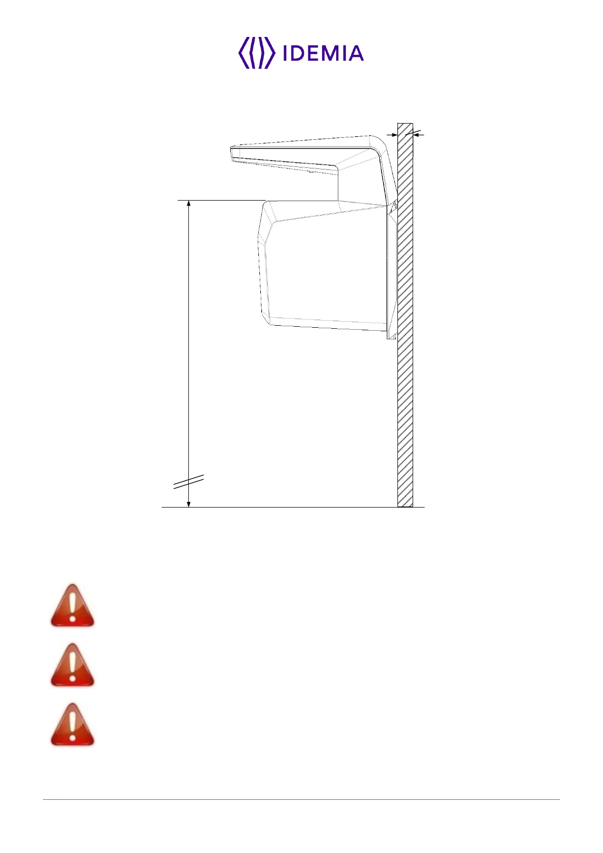 The recommended height for fixing of the terminal is 1.05 to 1.15 m (height of the acquisition glass).